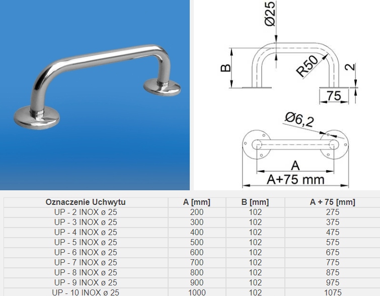 РУЧКА ДЛЯ ІНВАЛІДІВ ПРЯМА ВГОРУ-4 40см INOX FI-25