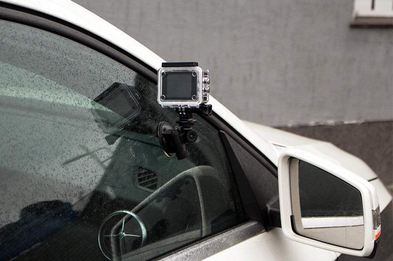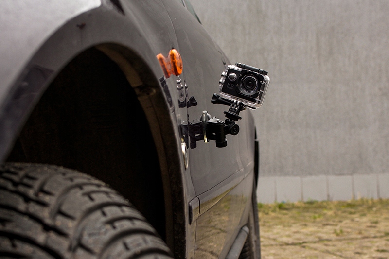 Використовувати тримач можна не тільки в салоні автомобіля! Міцна присоска із затискачем дозволяє безпечно встановити тримач камери на зовнішній стороні лобового скла або навіть на чистому плоскому корпусі!*