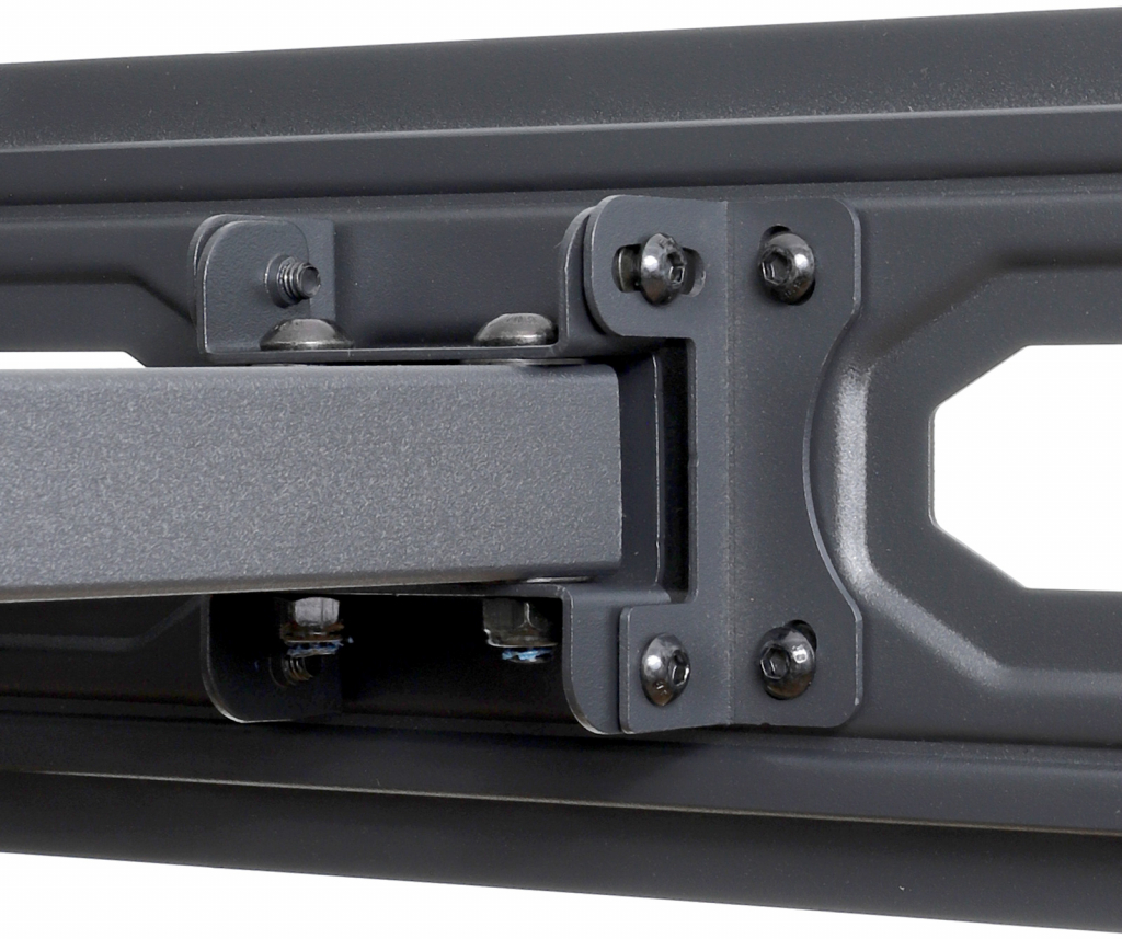 Подвійна рука гарантує стабільність і безпеку. Широкий діапазон регулювань як по вертикалі, так і по горизонталі та регулювання відповідної відстані від стіни. Ватерпас для полегшення рівномірного встановлення тримача.