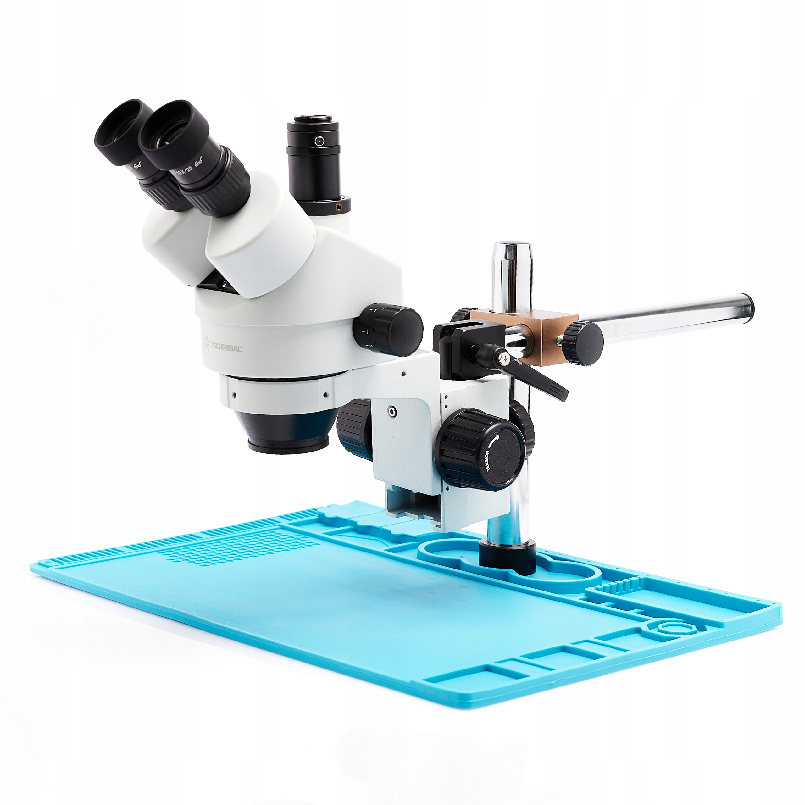Рішення, що збільшує робочу площу для стереоскопічних мікроскопів, особливо корисне для роботи з великими платами, наприклад, ноутбуками, забезпечує більший комфорт роботи та доступ до елементів, розташованих у далеких кутах плати.