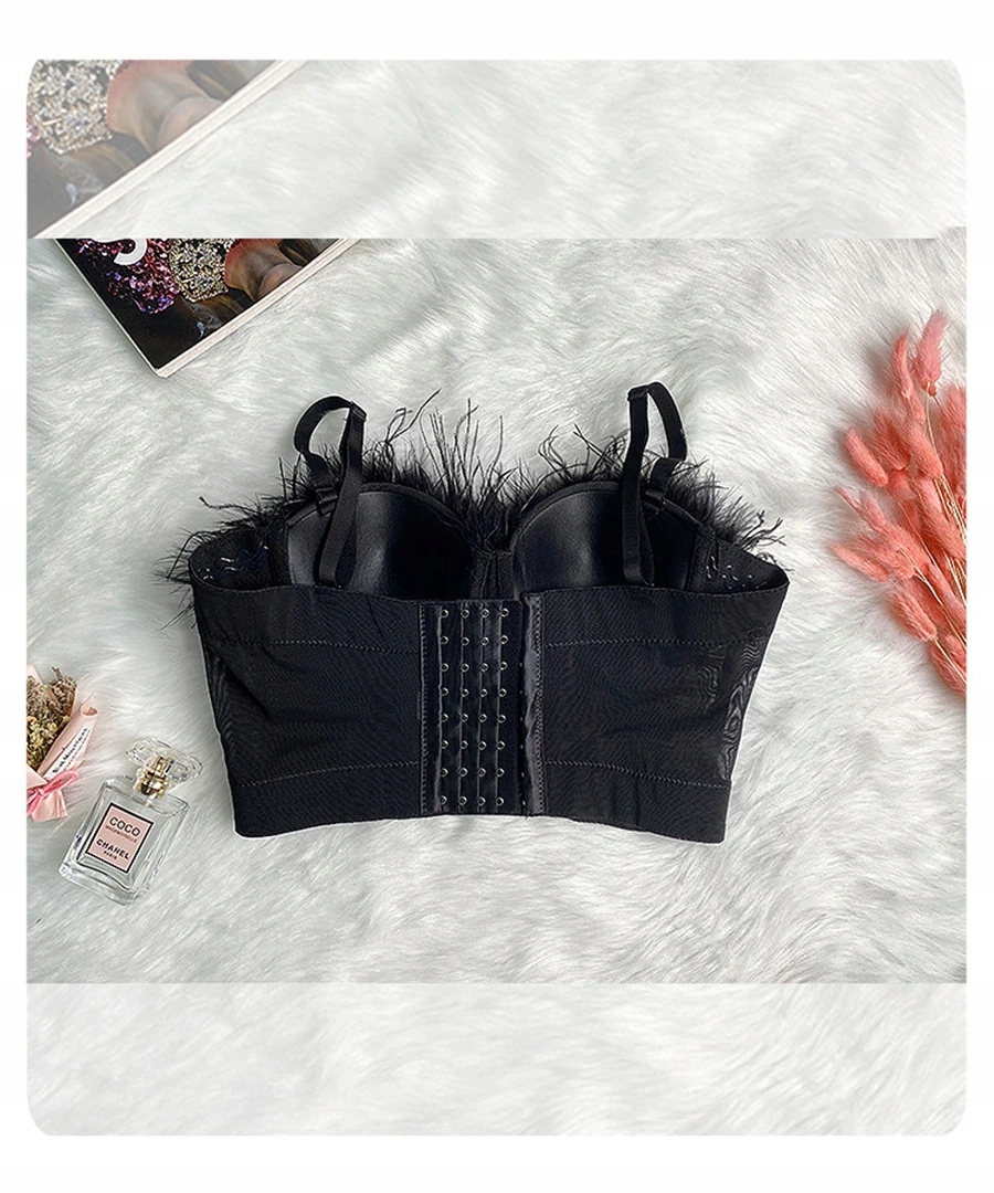 КРОП ТОП ЧОРНИЙ КОРСЕТ З ПІР'ЯМИ 90B 85D 90C