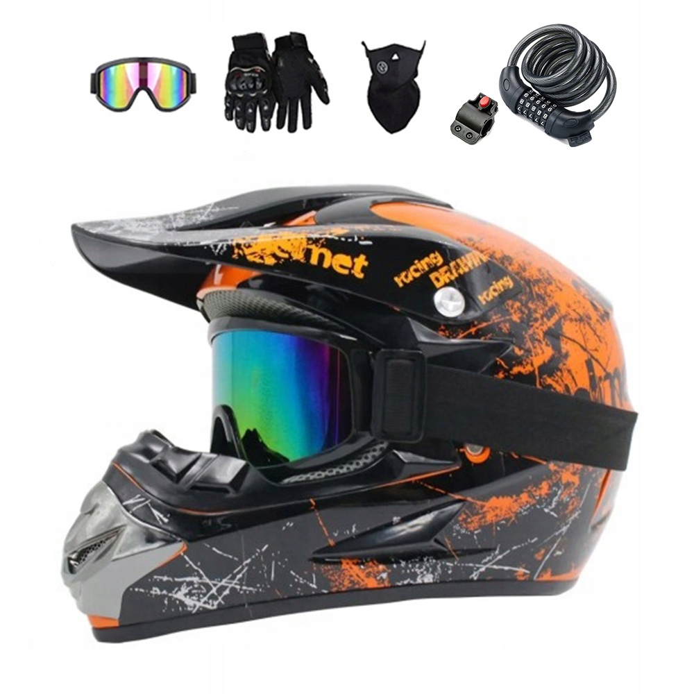 КРОС / ЕНДУРО / КВАД ШОЛОМ + РУКАВИЧКИ + ОКУЛЯРИ + ЗАМОК / ЗАМОК - РОЗМІР M