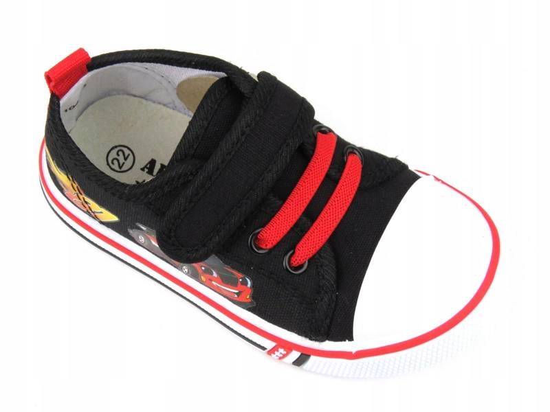 Дитяче взуттяAmerican Club виготовлено з тканини чорного кольору з мотивом гоночного автомобіля.