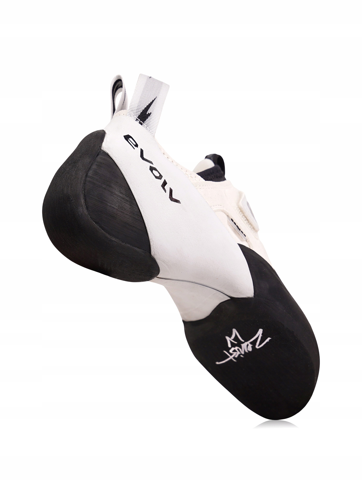 Evolv Zenist LV – сіро-білі кросівки для скелелазіння виготовлені із синтетичної веганської тканини з низькою еластичністю. Агресивний профіль і застібка на липучці є ідеальним вибором для боулдерінгу, забезпечуючи високу асиметрію, що сприяє точності на маленьких кроках. Модель пропонує збалансований баланс між роботою над тертям, мікрокроками та зачепленням п’яти та носка, забезпечуючи повну функціональність під час лазіння по різному рельєфу.
