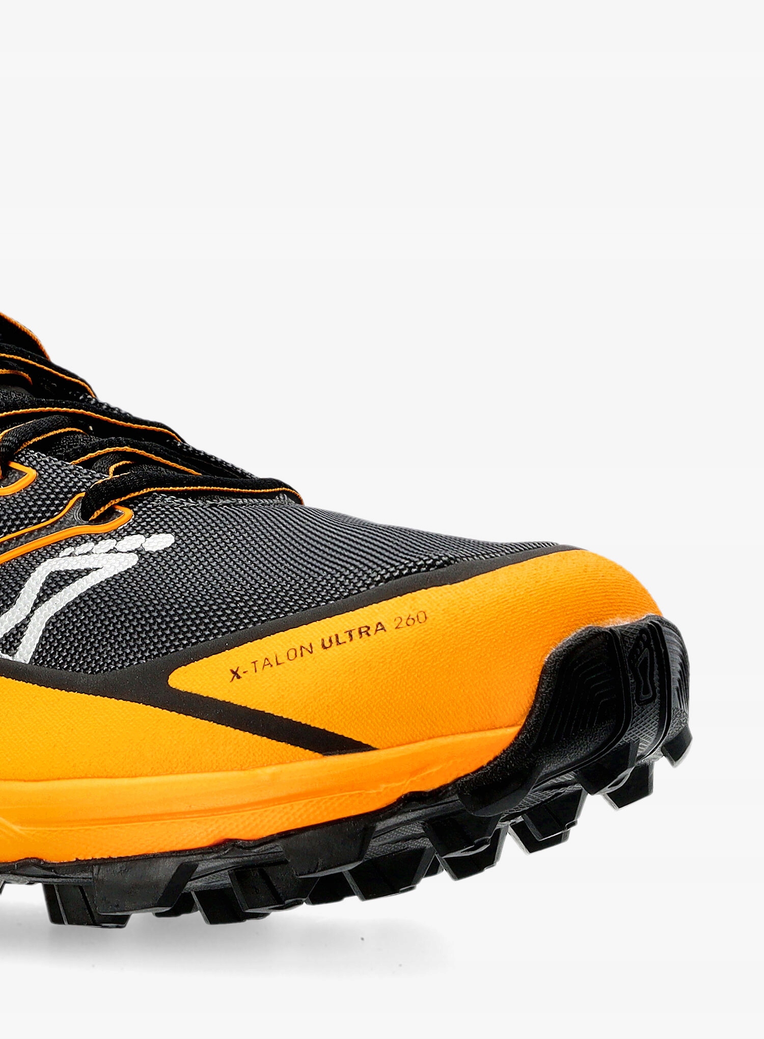 Кросівки Inov-8 X-Talon Ultra 260 V2 мають міцний нейлоновий верх, який стійкий до важких зовнішніх умов. Щоб зробити його ще більш надійним, він був посилений гумою в чутливих місцях. Язичок цієї моделі кріпиться за допомогою клина, що ускладнює проникнення бруду та каміння всередину.