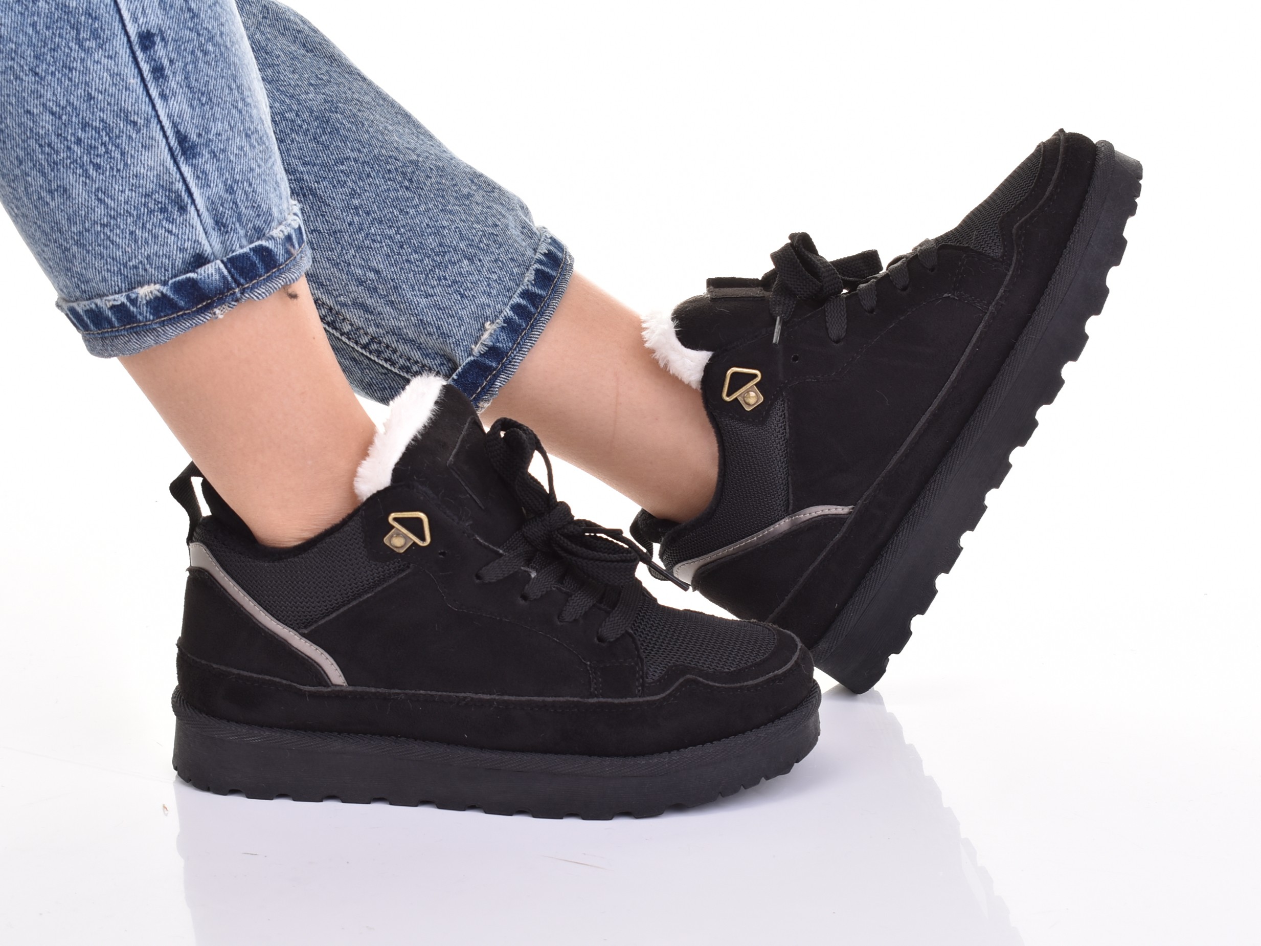 КРОСІВКИ НА ХУТРУ ЖІНОЧЕ СПОРТИВНЕ ЗИМОВЕ ВЗУТТЯ, ЧОРНЕ