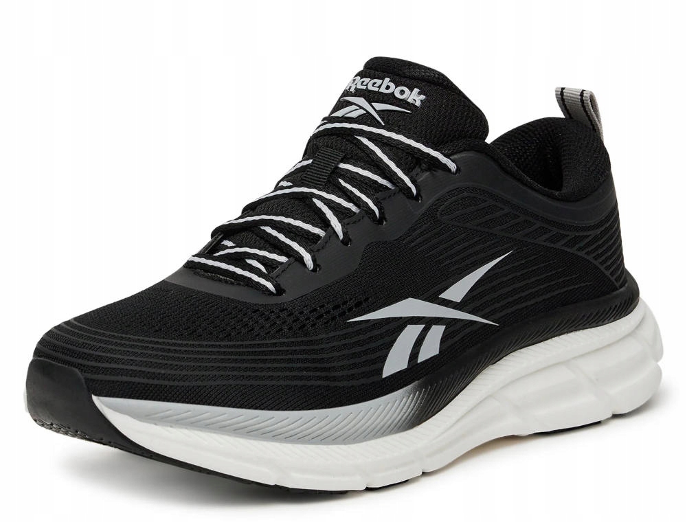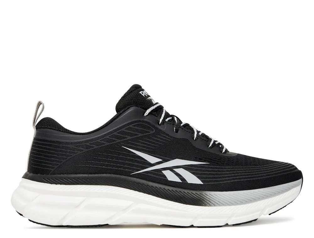 Чорні жіночі спортивні кросівки Reebok Road Strider - чудовий вибір для жінок, які цінують комфорт і універсальний стиль. Виготовлені з легкого дихаючого матеріалу, вони забезпечують комфорт кожен день і під час тренувань. Завдяки класичній шнурівці вони ідеально сидять на нозі, а завдяки спортивному дизайну вони підходять практично до будь-якого стилю - від легінсів до джинсів. Ідеально підходить для прогулянок, спортзалу та активного дня!
