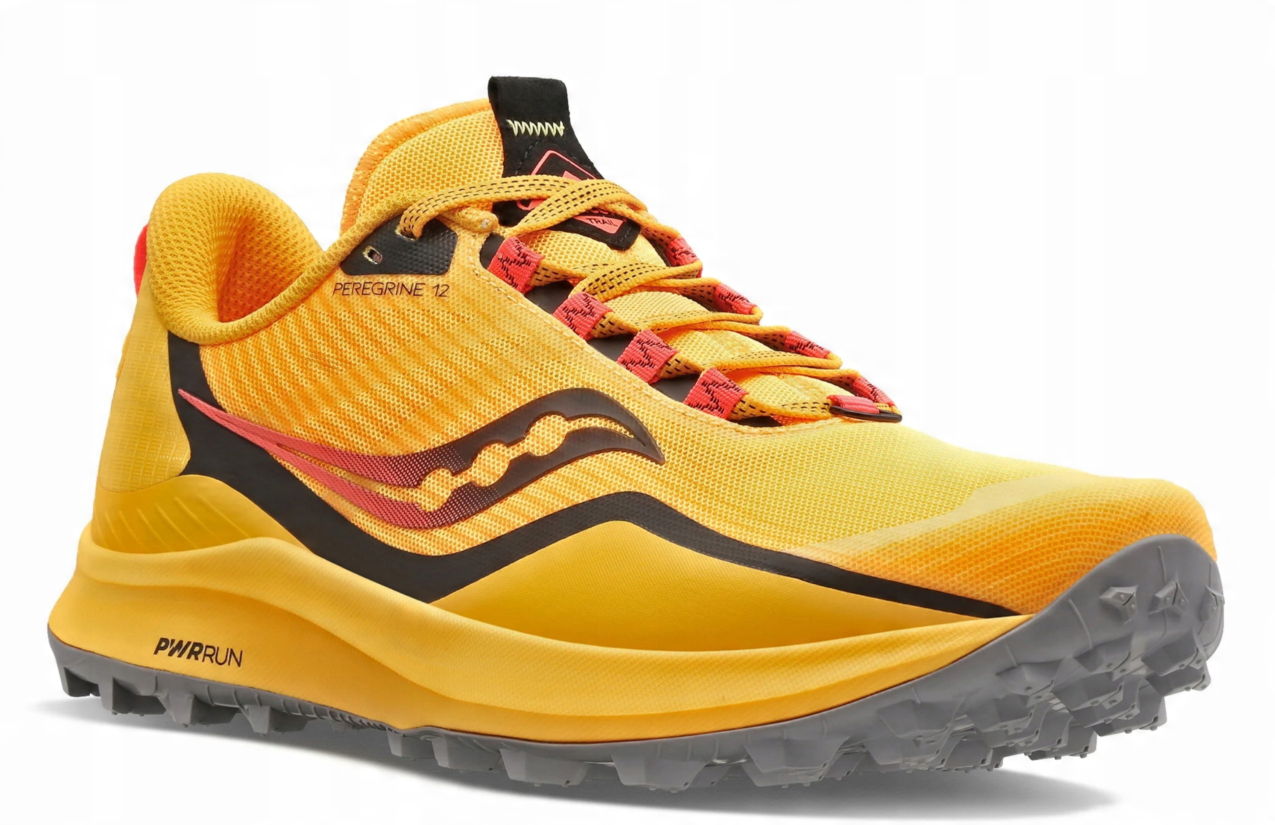 Порівняно з попередньою моделлю, Peregrine 12 має на 11% меншу вагу, підвищену гнучкість і кращу відчувати тротуар. Підошва має протектор глибиною 5 мм, що забезпечує хороше зчеплення на будь-якій місцевості. Внутрішня підошва має зручну піну PWRRUN і пластину Rock. Вони виготовлені з вуглецевого волокна та інтегровані для кращого розподілу тиску та захисту стопи від гострих каменів та коренів. Крім того, Saucony модернізував устілки, які тепер виготовлені з матеріалу PWRRUN+, що додатково забезпечує ще більший комфорт.
