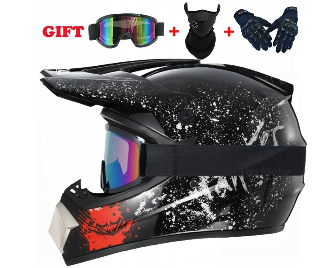 КРОСОВИЙ ШОЛОМ ДЛЯ МОТОЦИКЛА КРОСОВОГО ЕНДУРО МОНСТРА + КОМПЛЕКТ РУКАВИЧКИ + ОКУЛЯРИ