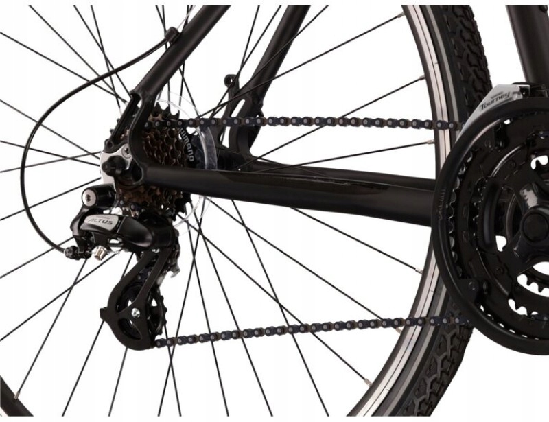 Крос Евадо 2.0 Перехресний велосипед. Велосипед на алюмінієвій рамі з SR Suntour Amass Amborber (модель M3010) з 50 -мм ходом. Це забезпечує не лише безпеку, але й комфорт. Такий стрибок амортизатора дозволяє відчути його дію та те, як він "обирає" дірки та перешкоди, які будуть на велосипеді. P> Вбудований велосипед, побудований на велосипеді, він знаходиться на рамі з алюмінію і оснащений хорошим 50 -мм амортизатором. Крім того, у нас все ще є аксесуари Shimano, а саме це передній турнірний перемикач та задній брейк Шимано Альтуса, який вже представляє більш високий рівень велосипедної технології. У нас також є кривошип Suntour з трьома стільницями, і 7 -ровний вільним колесом Shimano, що дає загалом 21 передач. Шини в Evado 2.0 - MITAS V84 GRIPPER, тобто хороша адгезія та низька стійкість до кочення. Це характерна особливість перехресних велосипедів, які можуть їздити дуже швидко, але також у різноманітній області. Перевірте жіночий Evado 2.0