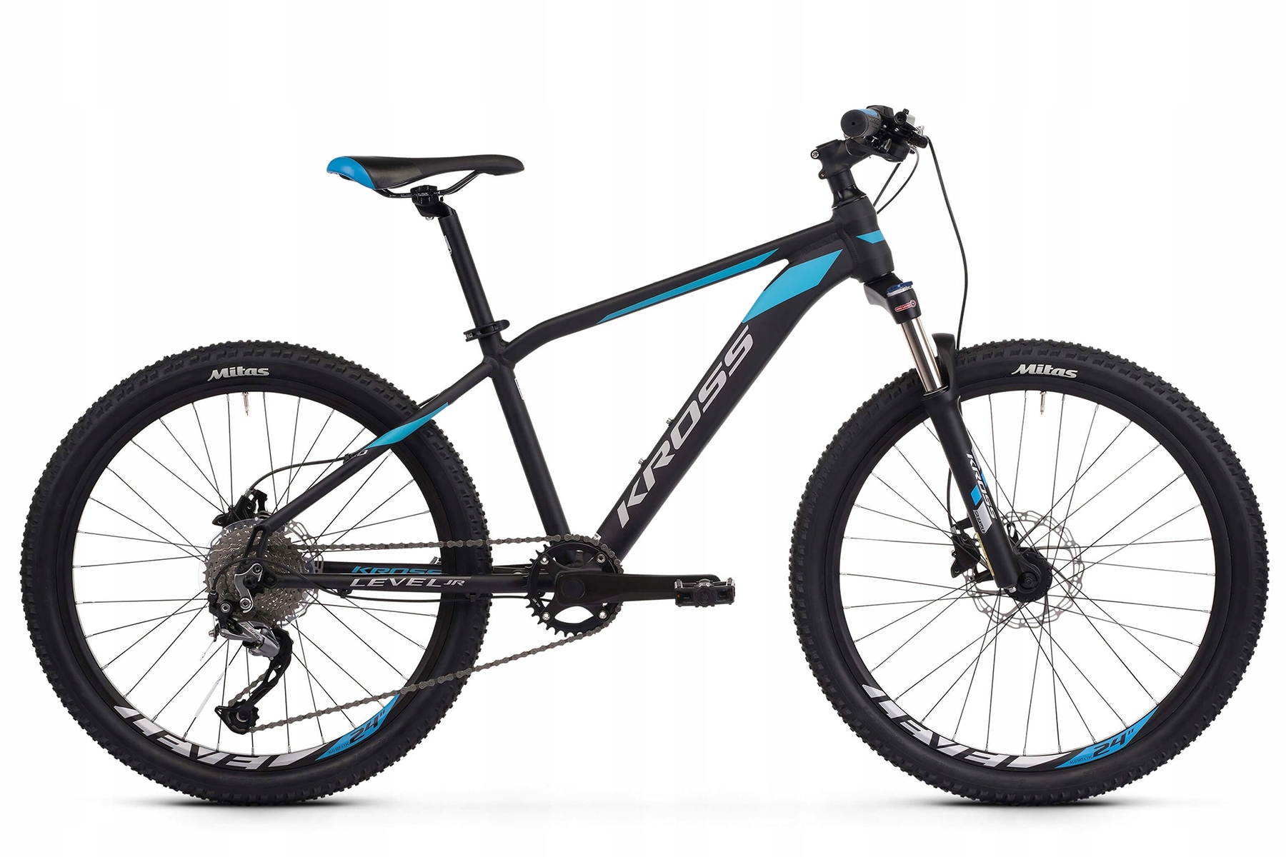 Аксесуари KROSS Level Junior 3.0 базуються на Концепція одноплатформенного шатуна і компонентів від японського виробника велосипедного обладнання Shimano. Це дозволило нам створити привід із дев’ятишвидкісною касетою, керованою заднім перемикачем Shimano Alivio M3100, і це рішення мінімізує ризик падіння ланцюга. На велосипеді використовується повітряний амортизатор SR Suntour XCR Air LO з ходом 80 мм для підвищення комфорту їзди по бездоріжжю і полегшення подолання перешкод. Крім того, корона вилки має можливість її фіксації. KROSS Level Junior 3.0 має колеса 24" з шинами Mitas V85 Ocelot шириною 2.1", що забезпечить передбачувану поведінку мотоцикла як у місті, так і на бездоріжжі. Сюди також входять гідравлічні дискові гальма JAK-Y1 NUTT, які забезпечують безпечне гальмування навіть на найскладнішій місцевості.
