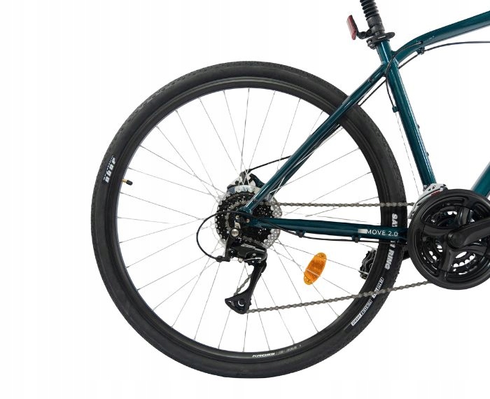 KROSS Move 2.0 — це пропозиція для людей, які хочуть поєднати повсякденну їзду містом із поїздками на вихідних поза протореними шляхами. Легка бірюзова та срібляста алюмінієва рама не тільки чудово виглядає, але й забезпечує довговічність та комфорт під час довших маршрутів. Завдяки універсальному розміру коліс 28" велосипед чудово керує як асфальтованими дорогами, так і лісовими стежками.
