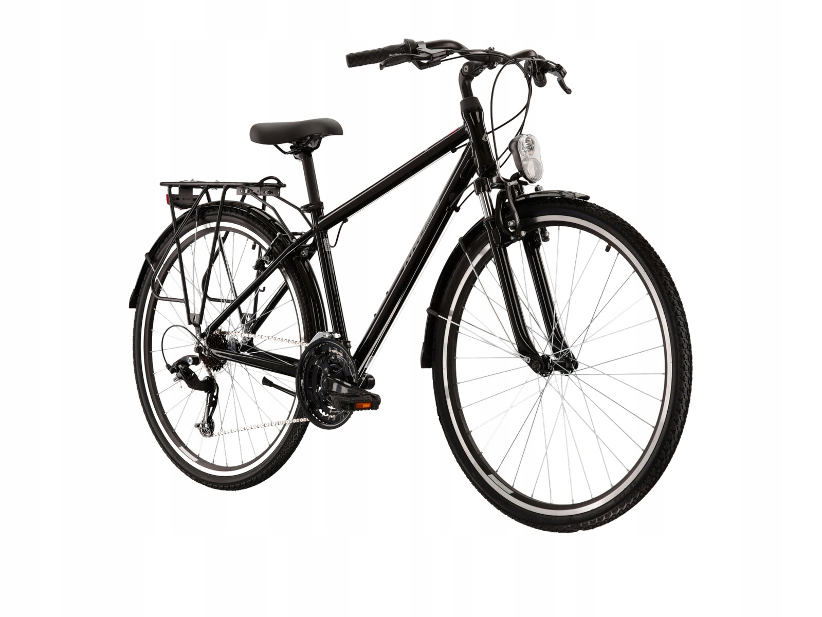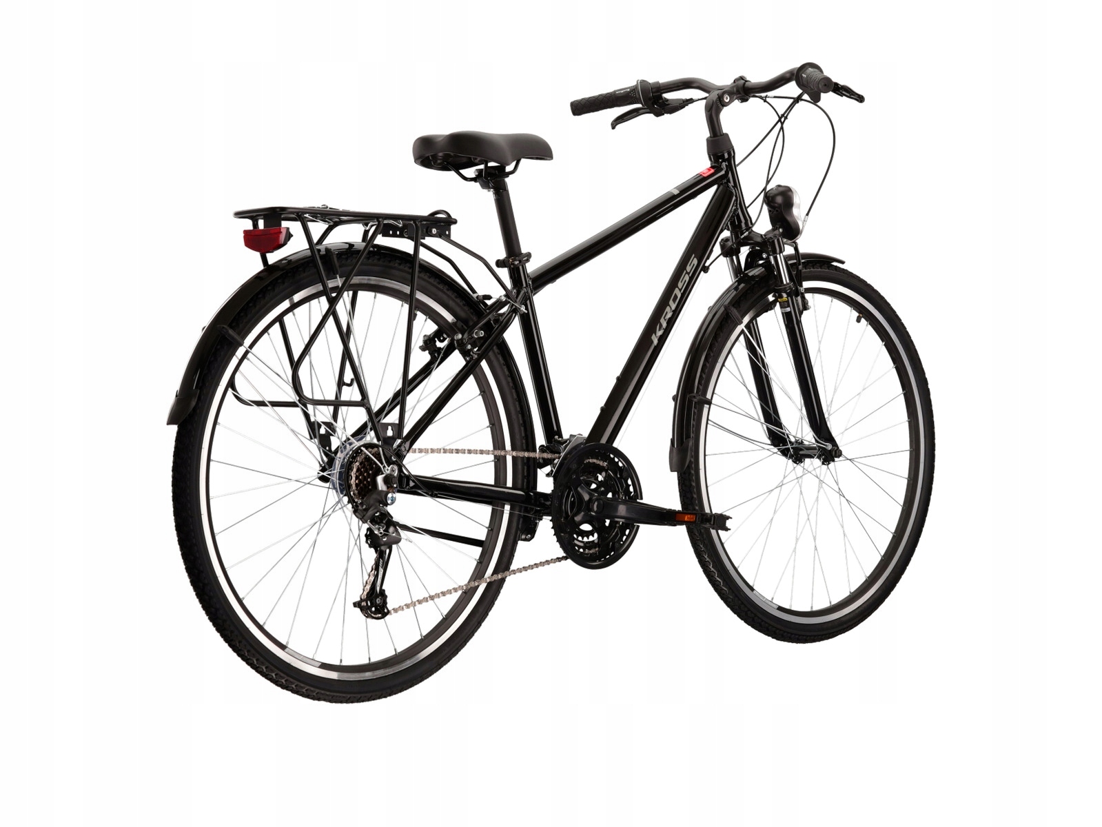 Щоб зробити це можливим, Kross Trans 1.0 оснащений якісними компонентами. За перемикання передач відповідають перемикачі Sunrace - FDM300 спереду і RDM41 ззаду. Це означає, що незалежно від місцевості, на якій ви зараз долаєте, ви завжди можете підібрати відповідне передавальне число, що позитивно позначиться на якості водіння. Завдяки амортизаційній вилці власної конструкції Kross під час їзди по складнішій місцевості ваші руки не будуть відчувати такої втоми, як у випадку з класичною вилкою. Виробники також забезпечили якісні V-brake, завдяки яким ви маєте адекватний контроль над тим, коли велосипед має зупинитися.