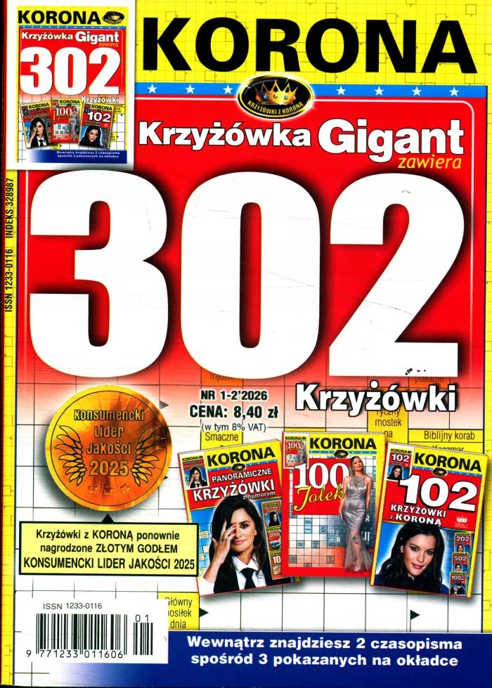 КРОСВОРД ГІГАНТ 302 КРОСВОРД 1 - 2 / 2026 KORONA