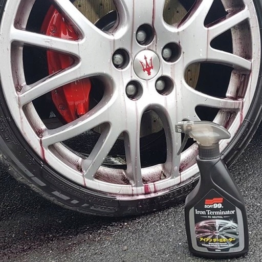 Soft99 Iron Terminator – це рідина для чищення ободів із нейтральним рН, яка розчиняє металеві частинки, шлам гальмівних колодок, дорожній бруд і летку іржу.