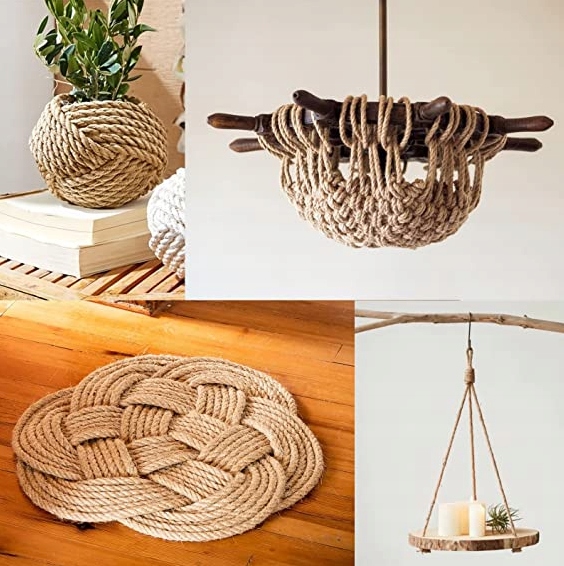 Джутову мотузку вдома можна використовувати для дизайну інтер’єру, як випадкову прикрасу або як матеріал для створення джутового килима.