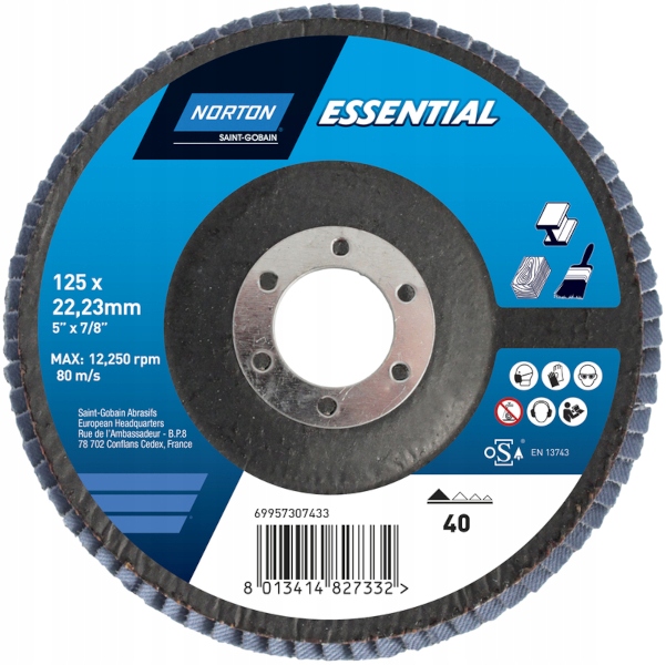 КРУГ ШЛІФУВАЛЬНИЙ ЛЮСТКОВИЙ 125ММ P40 NORTON