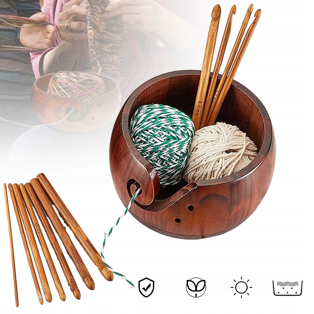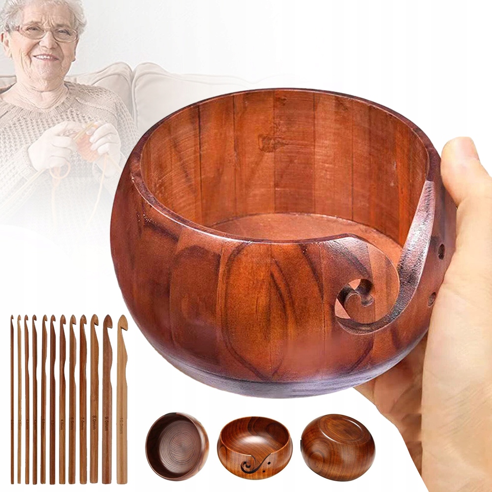 Чаша для чаші з дерев’яної вовни для пряжі для себе з 12 голками для в'язання гачком