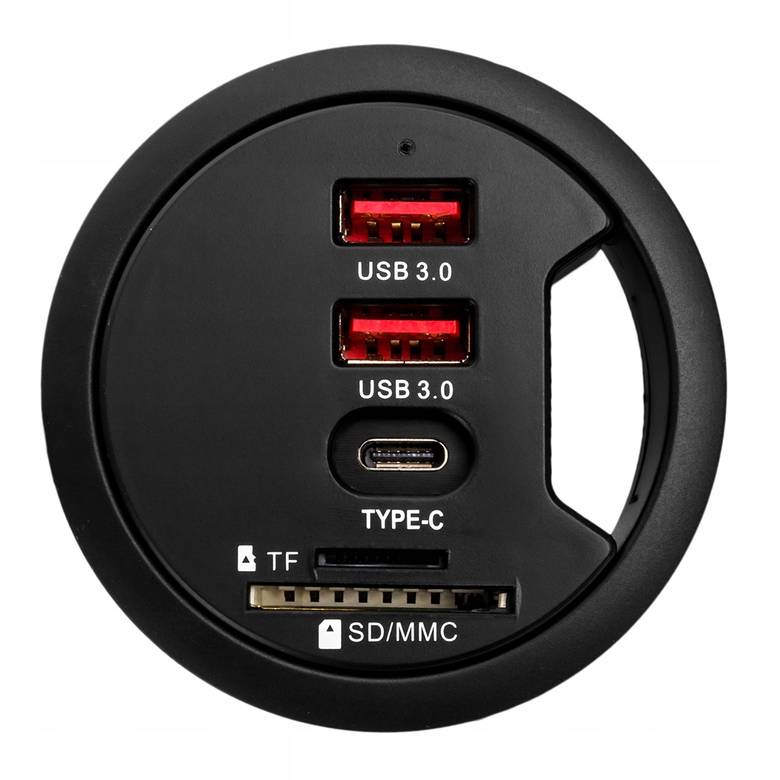 Mediaport Spacetronik ERGOLINE SPS-R0D5B - це сучасне рішення, яке можна використовувати в магазинах, виставкових залах, конференц-залах, офісах і вдома. Виготовлений з високоякісних компонентів. Виріб призначений для внутрішньої установки на робочих столах, стільницях і столах, як вертикально, так і горизонтально, забезпечуючи доступ до розеток. Цей круглий медіапорт оснащено зарядним пристроєм USB, зарядним пристроєм USB-C і слотами для карт SD і TF