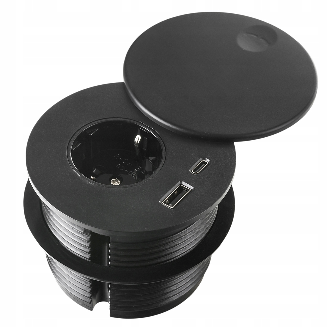 Mediaport Spacetronik ERGOLINE SPS-R1D3B - це сучасне рішення, яке можна використовувати в магазинах, виставкових залах, конференц-залах, офісах і вдома. Виготовлений з високоякісних компонентів. Виріб призначений для внутрішньої установки на робочих столах, стільницях і столах, як вертикально, так і горизонтально, забезпечуючи доступ до розеток. Цей круглий медіапорт оснащено 1 розеткою 110–250 В (типу Німеччини) і подвійним зарядним пристроєм USB, що складається з USB-A та USB-C.
