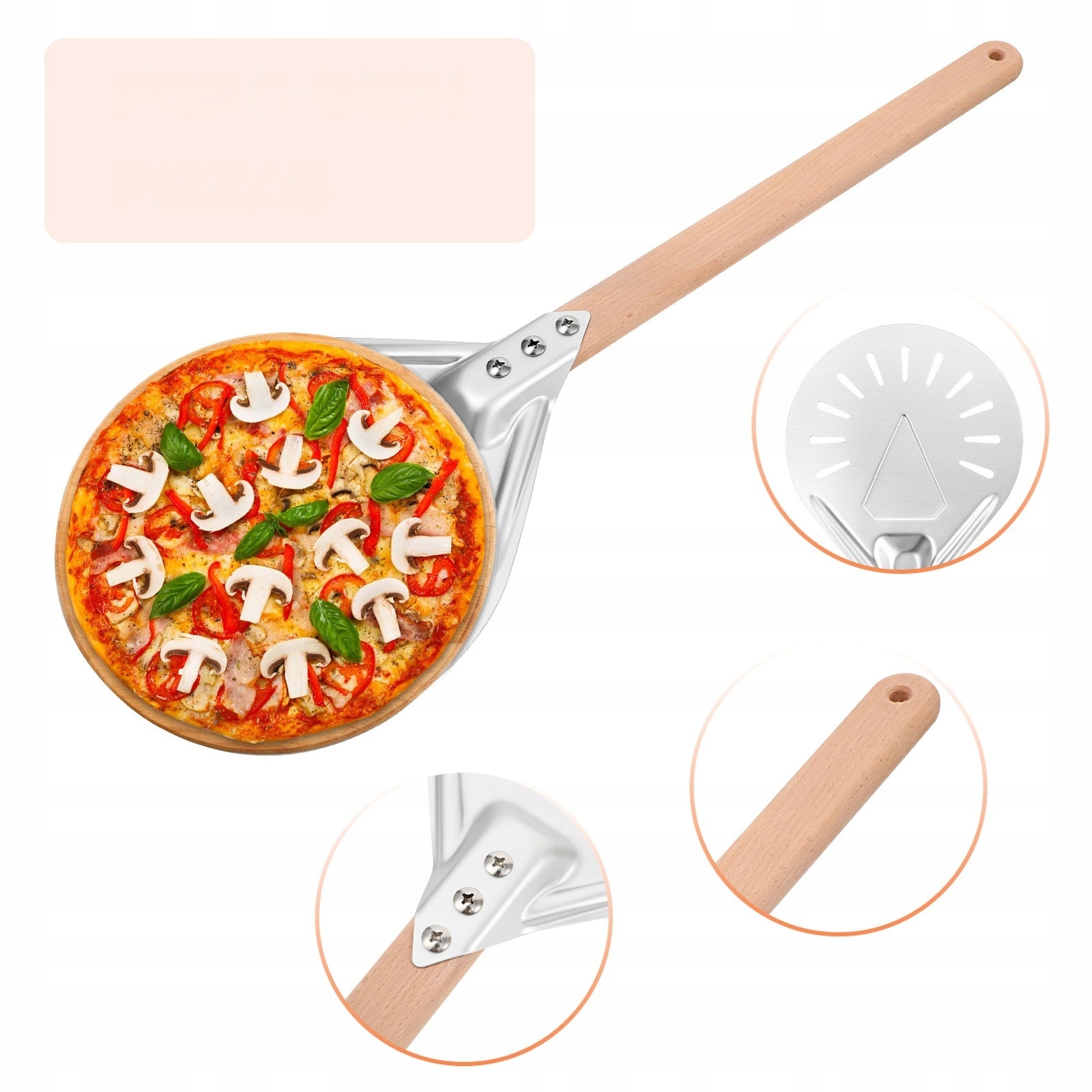 ✅Виготовлена з деревини та алюмінію преміум-класу, поверхня гладка, зносостійка та стійка до подряпин, Ручка дерев'яна із закругленими краями, без задирок, зручна в експлуатації. Цей обертач для піци захищає ваші руки від духовки та палючого тепла. Ідеально підходить для випічки піци.