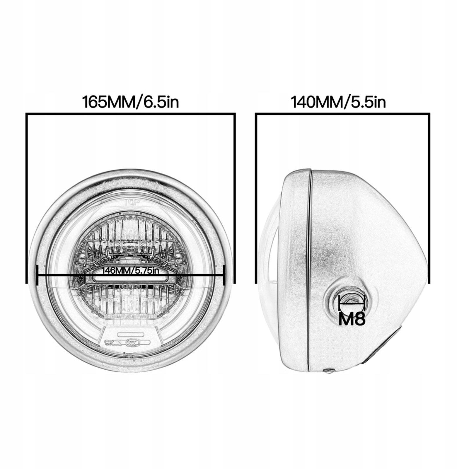1. Пристосування: 6,5-дюймова кругла фара є універсальною для мотоциклів, скутерів, вуличних візків, мотокросу. Будь ласка, перевірте таблицю розмірів, щоб побачити, чи підходить вона.