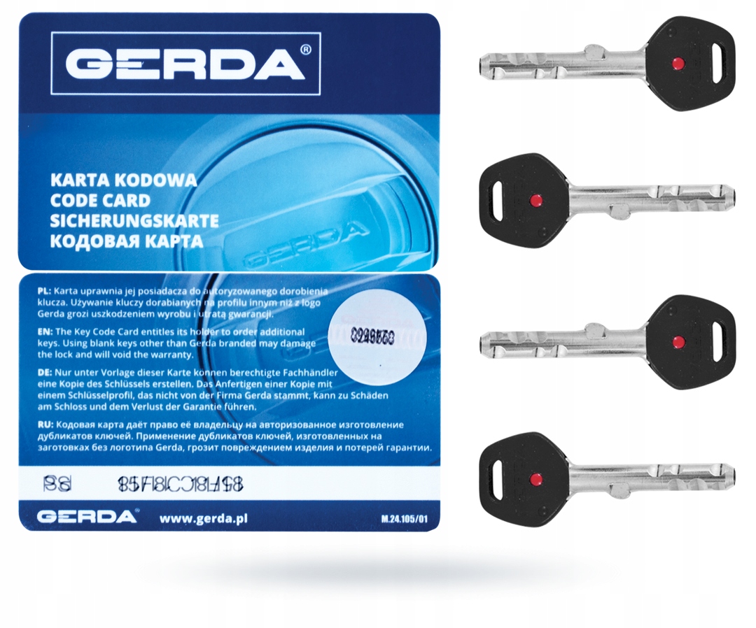 - Лише дублювання ключа на основі картки коду безпеки в авторизованих дистриб’юторів GERDA
