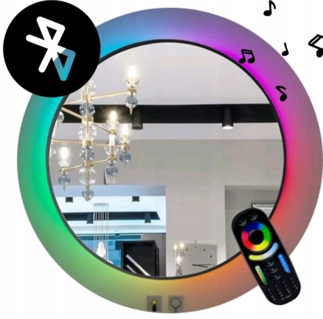 Кругле дзеркало 80см світлодіод RGB з динаміками Bluetooth C алюмінієва рама