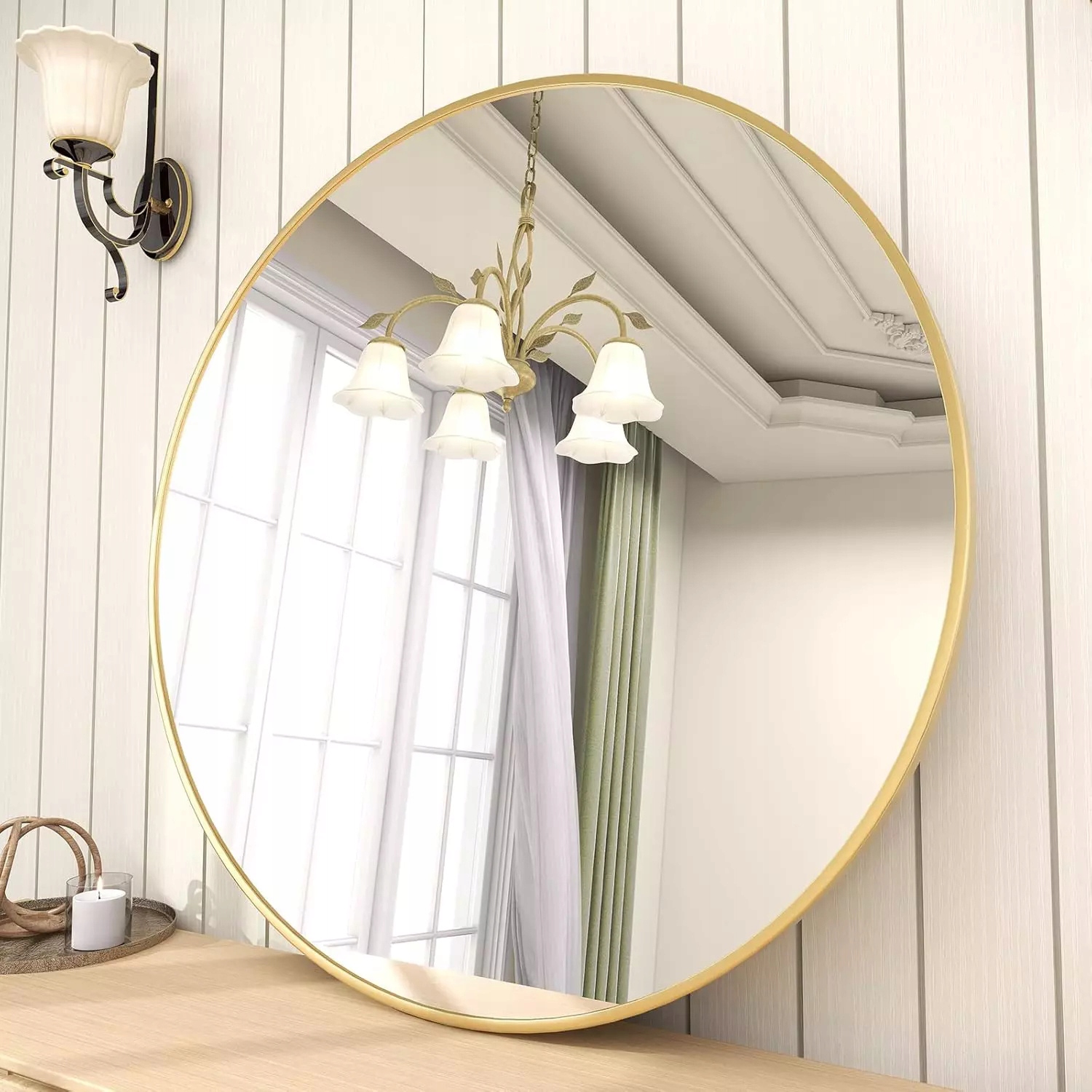 КРУГЛЕ НАСТІННЕ ДЗЕРКАЛО, ЗОЛОТА МЕТАЛЕВА РАМА ДЛЯ ВАННОЇ ВІТАЛЬНІ GLAMOUR 50см