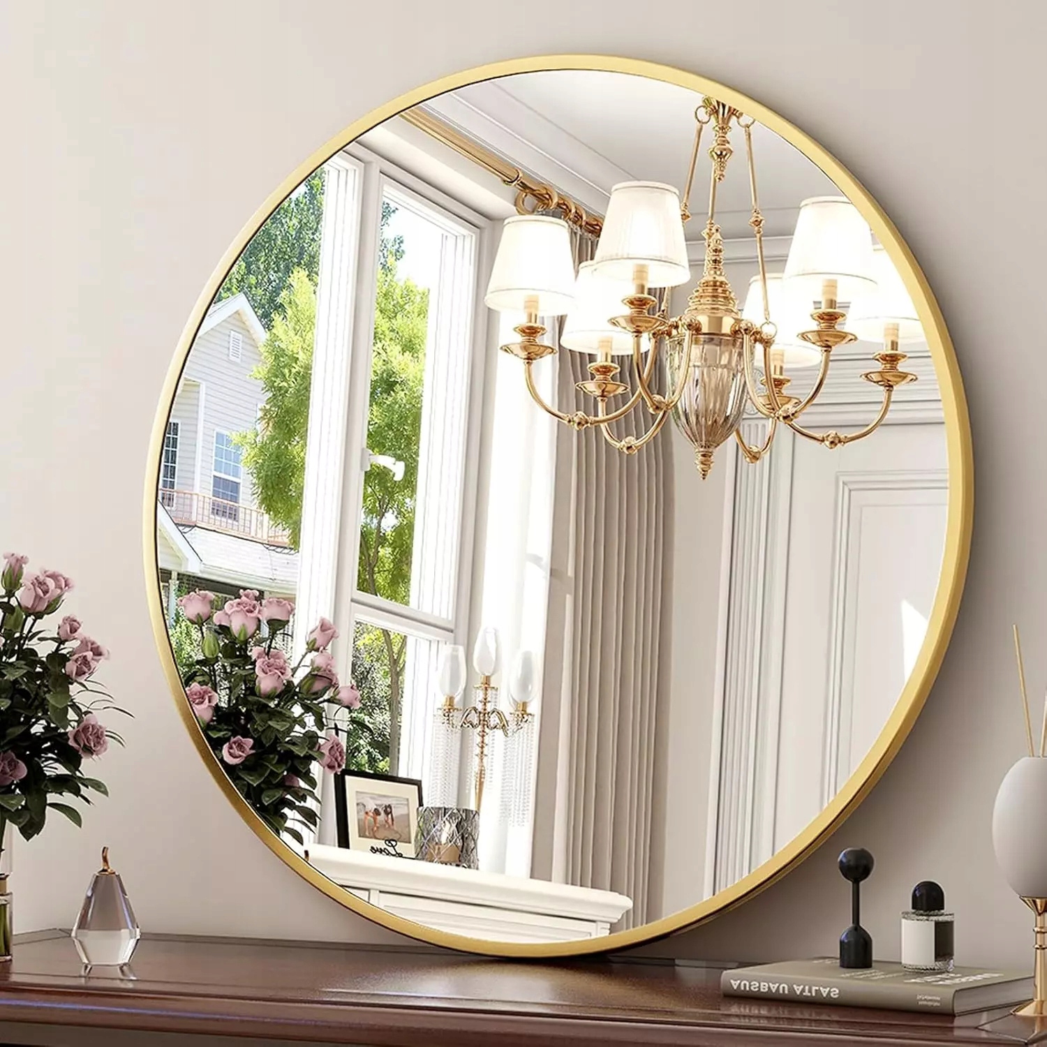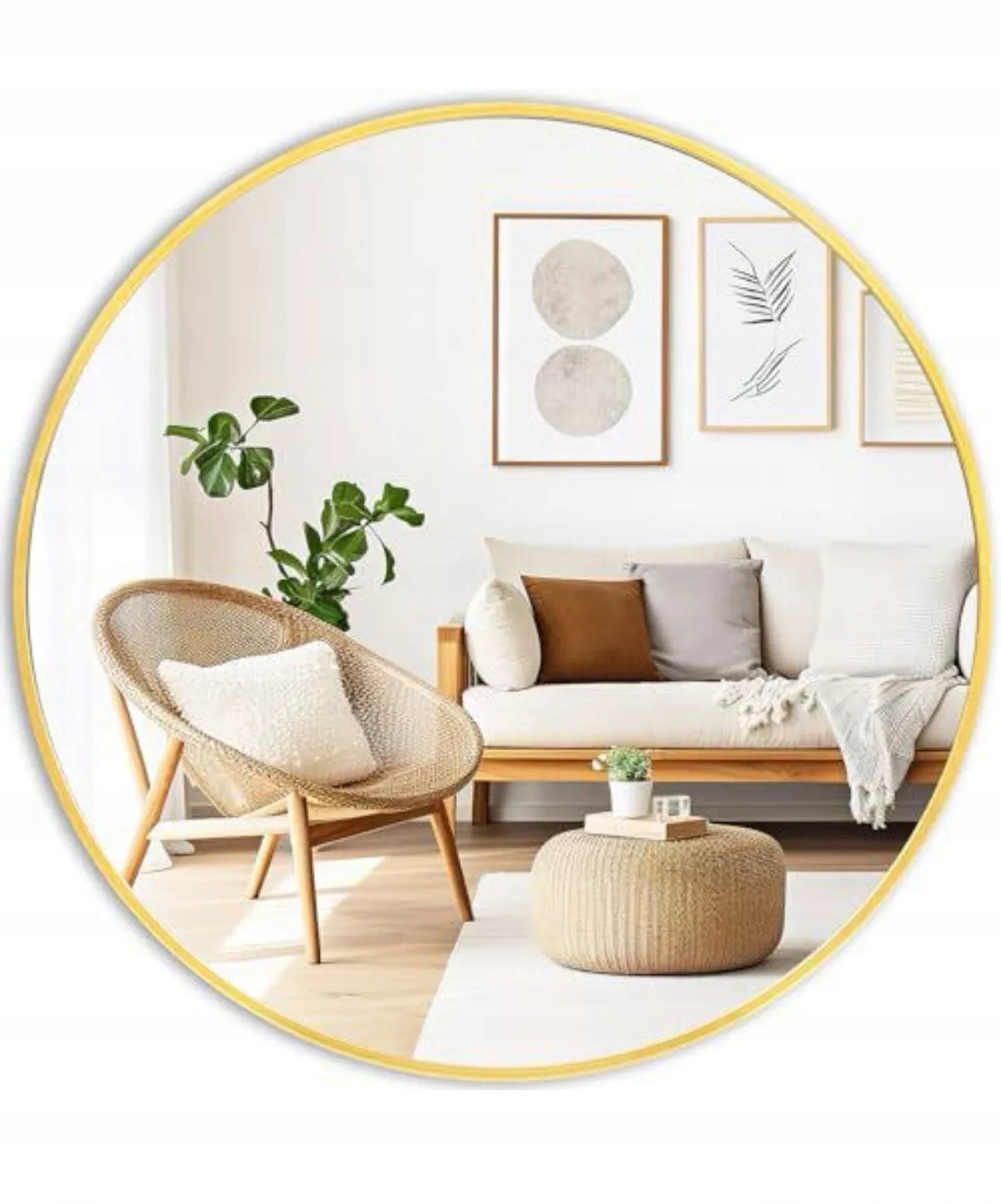 Дзеркало діаметром 50 см - унікальний декоративний елемент, який поєднує в собі функціональність і елегантність. Завдяки круглій формі і золотистому обрамленню він ідеально вписується в сучасні інтер'єри, як в скандинавському стилі, так і в стилі лофт. Універсальний дизайн робить його ідеальним для будь-якої кімнати - від ванної кімнати, вітальні до холу. Виготовлене з високоякісних матеріалів дзеркало характеризується міцною конструкцією, що забезпечує тривалий термін служби.