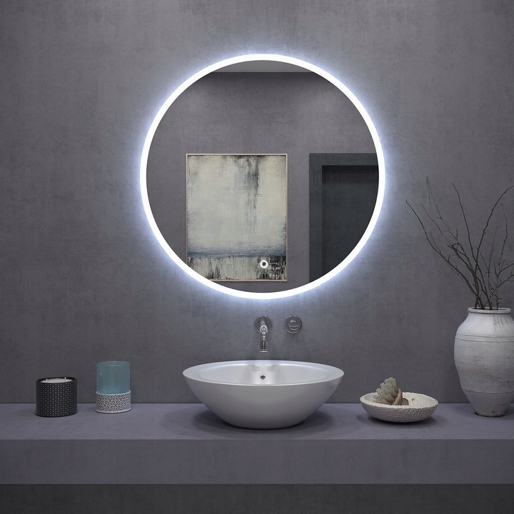 Кругле настінне дзеркало з сенсорним підсвічуванням 60 см, світлодіодне покриття, захист від запотівання, без пари