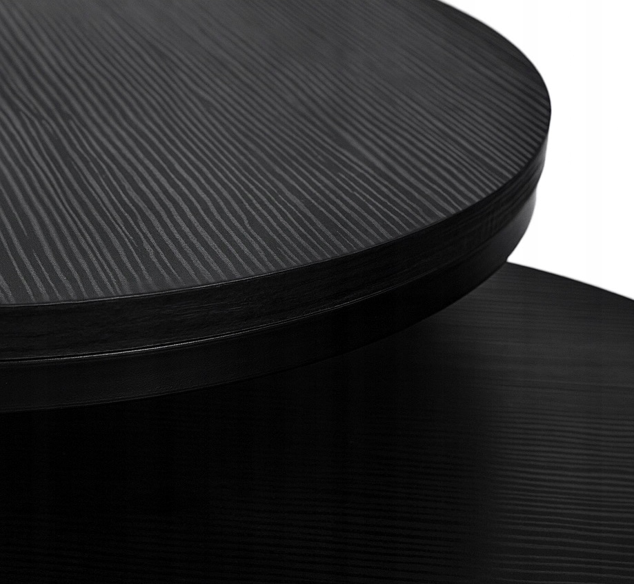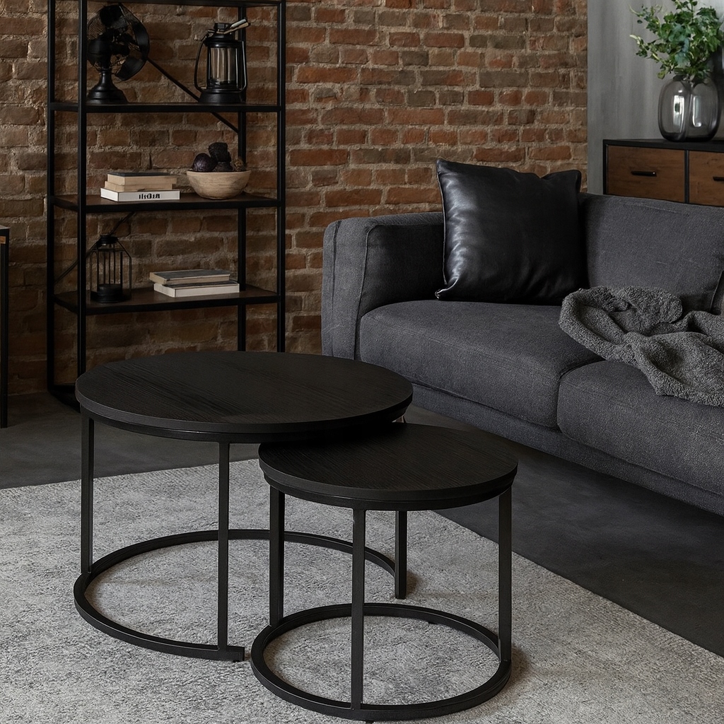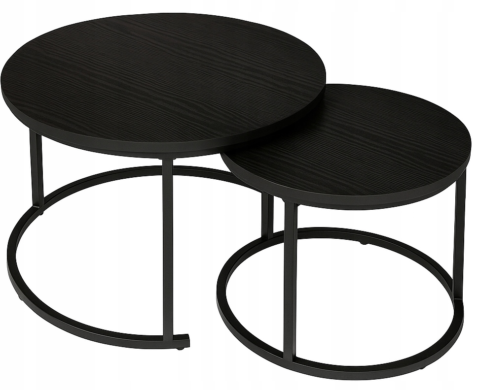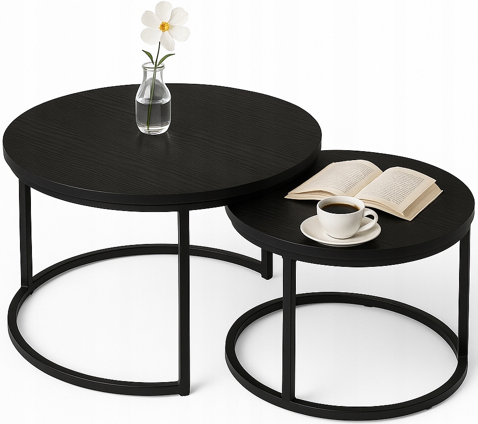 Відкрийте для себе дует столів, який ідеально відповідає сучасним тенденціям дизайну інтер'єру. Мінімалістичні круглі форми, матовий чорний і можливість переміщати один стіл під інший роблять набір ідеальним як для маленьких, так і для великих приміщень. Це ідеальне рішення для інтер'єру вітальні, спальні, кабінету або сучасного лофта.
