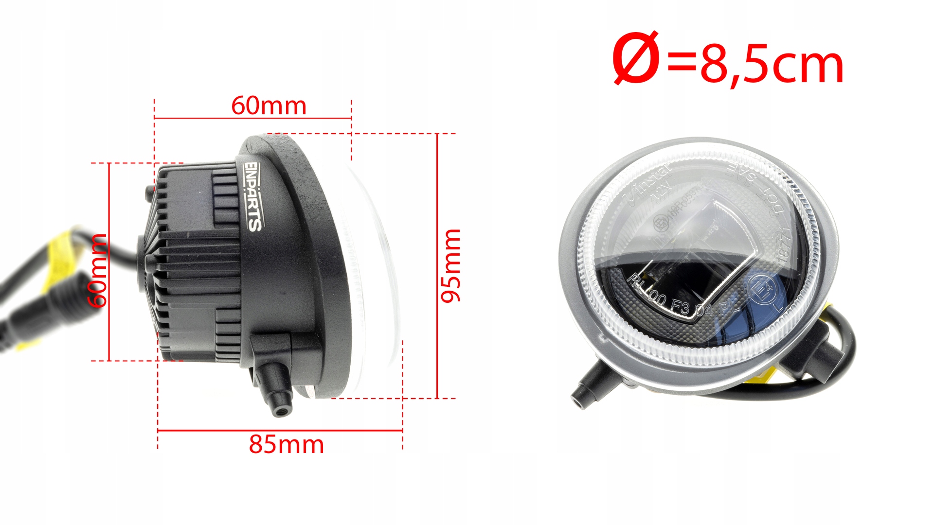 einparts duolight dl36 оснащений ручками, пристосованими до оригінального кріплення туманних світильників у популярних автомобілях ( підходить понад 100 моделей автомобілів!) . Це замінник туманних світильників, тобто, просто видаліть оригінальні галогени і покладіть в цьому місці лампи дулотайт - немає модифікацій, все ідеально підходить. Duolight - це унікальна лампа, оснащена двома функціями - денним світлом та туманною лампою в одній! Остання технологія легкої лінії була використана для виробництва денного світла, завдяки якому світло є рівномірним і світла немає. Найкращі світлодіоди, доступні на ринку - американський виробник Cree. були встановлені для освітлення оптичних волокон.