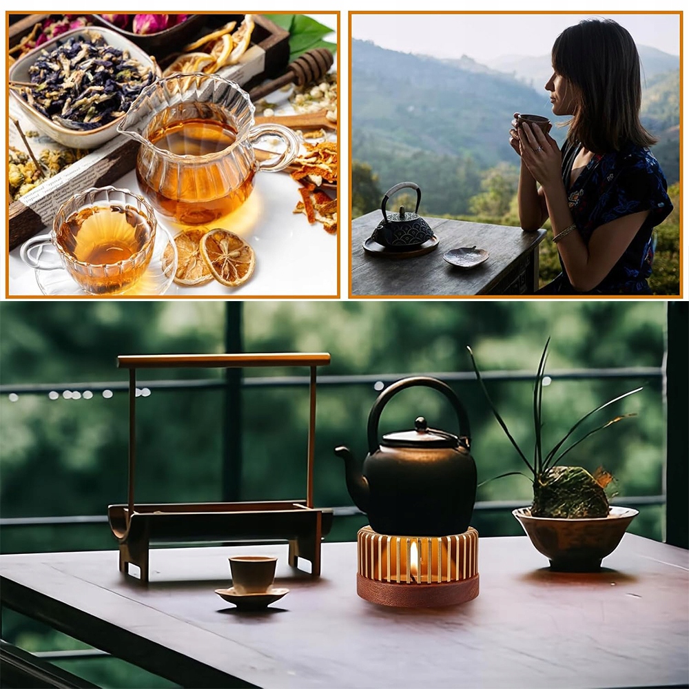 Довго зберігає тепло чаю, їжі та кави, сумісна з чайниками з нержавіючої сталі, боросилікатного скла та інших матеріалів. Красива форма джерела світла створює теплу і романтичну атмосферу. Практична та приваблива підігрівач для чаю з красивою грою світла й тіні.