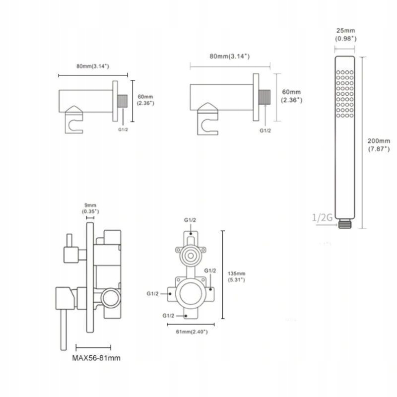 Усі елементи набору виготовлені з дуже міцної латуні - він має вихід для душ, шланг/гарнітура.