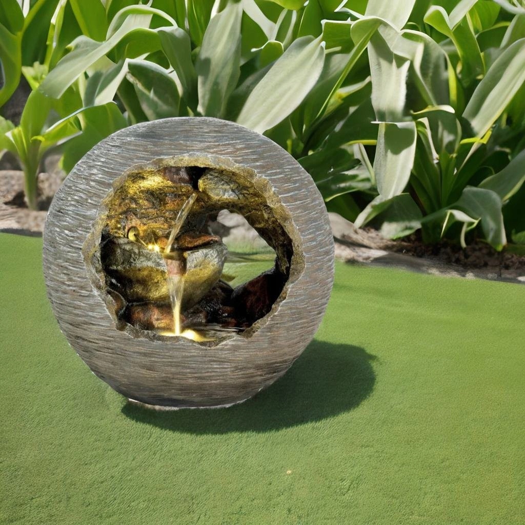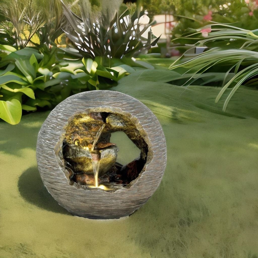 Круглий фонтан 48 см, садовий світлодіодний каскадний м'яч