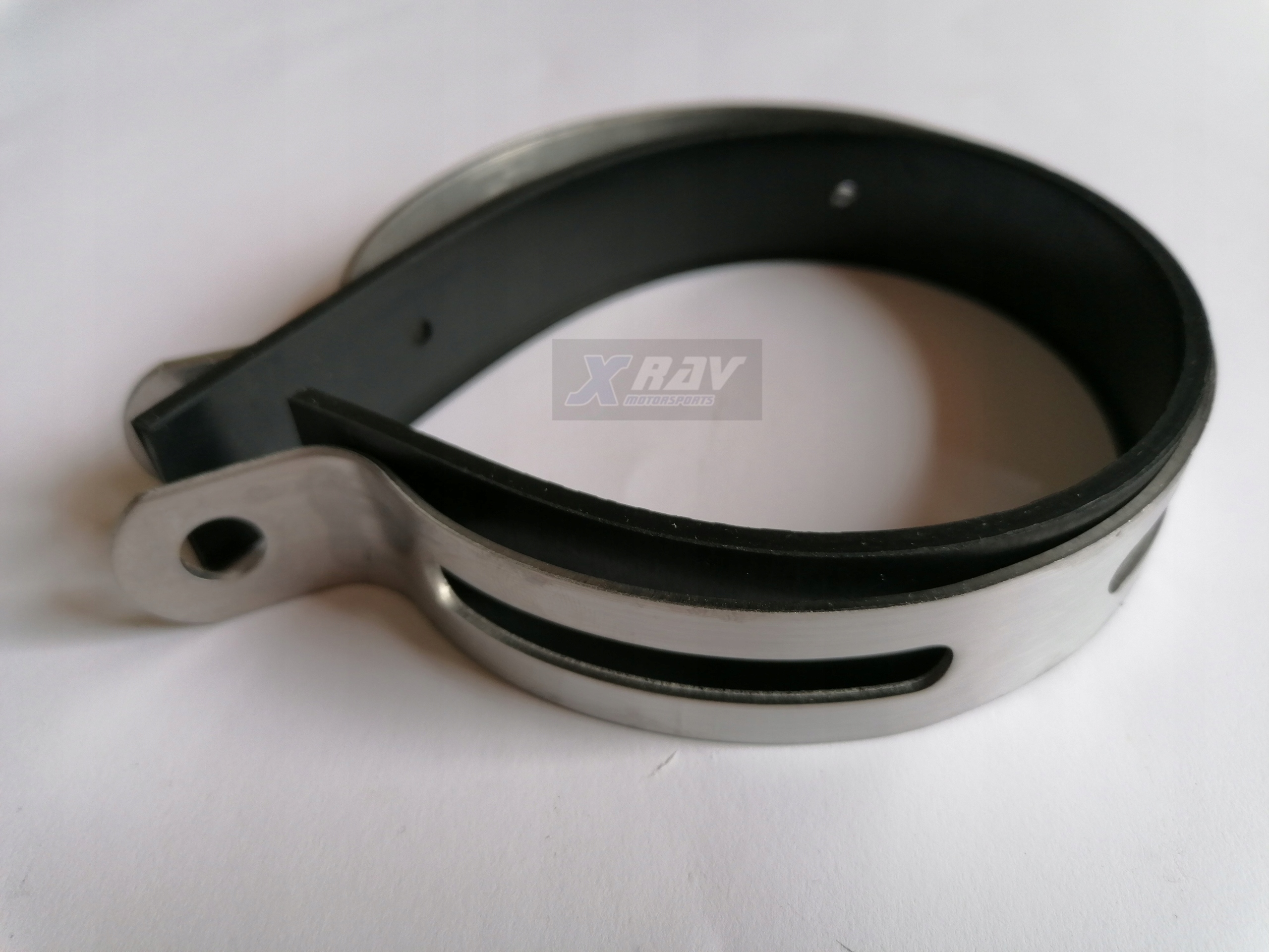 Міцний високоякісний круглий хомут для мотоциклетних глушників із термостійкою захисною гумою.