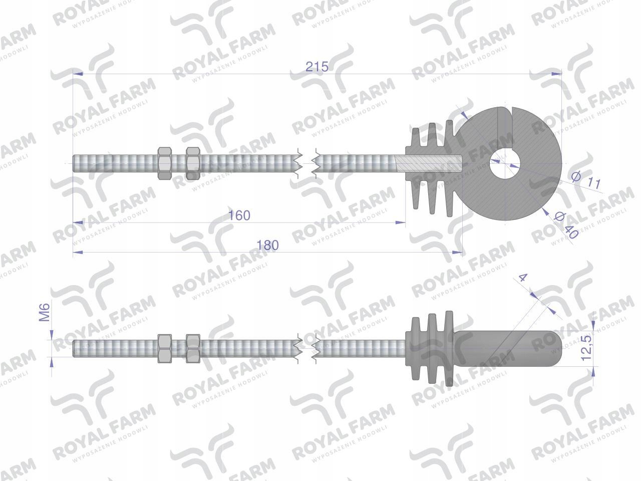 Круглий ізолятор з довгою ниткою M6X180 ROYAL FARM