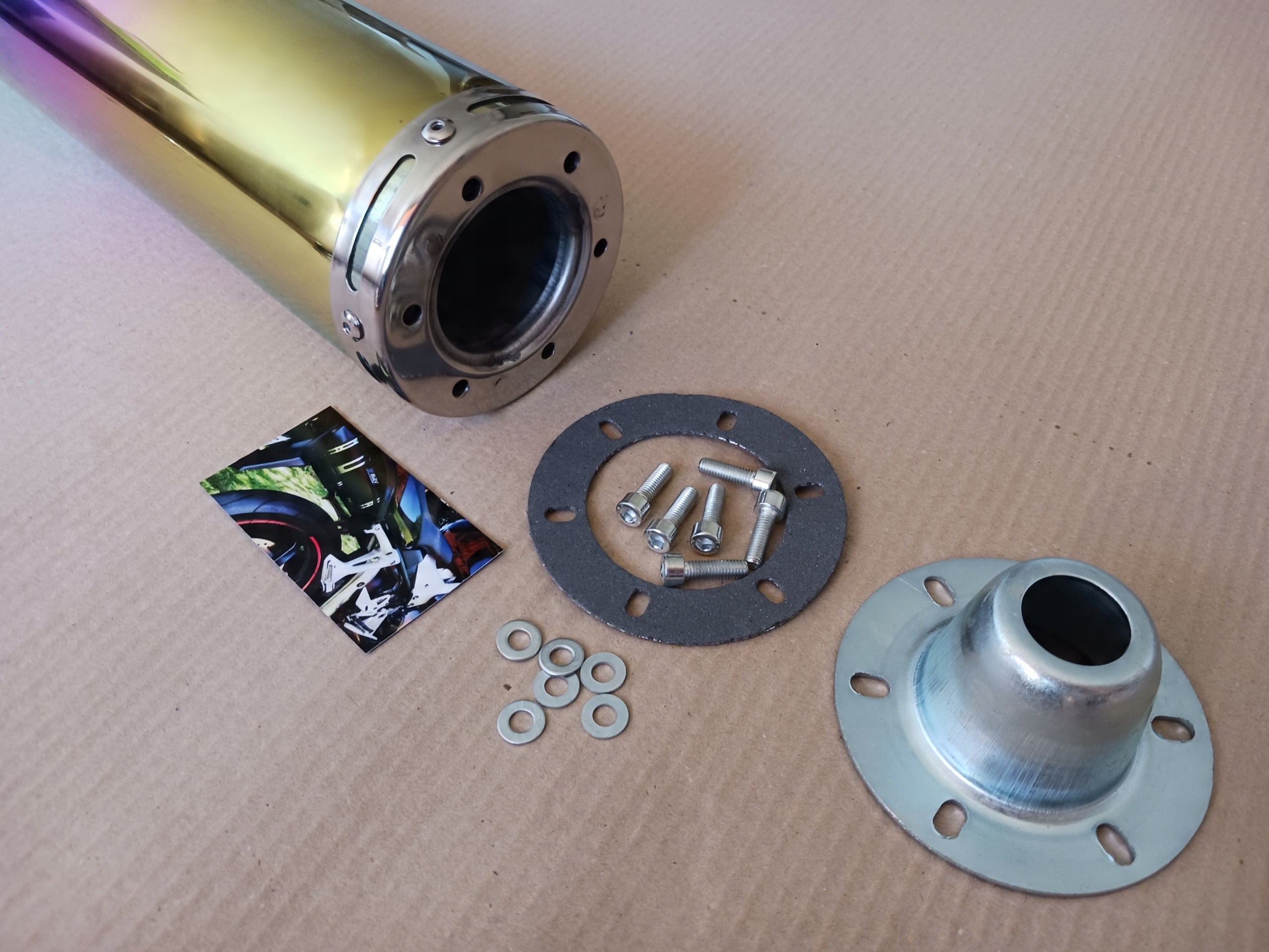 Завдяки адаптеру, що входить до кожного комплекту, цей вихлоп готовий до встановлення на БУДЬ-ЯКИЙ тип мотоцикла. Найкраще ущільнити адаптер зварюванням або іншим способом до оригінальної труби мотоцикла.