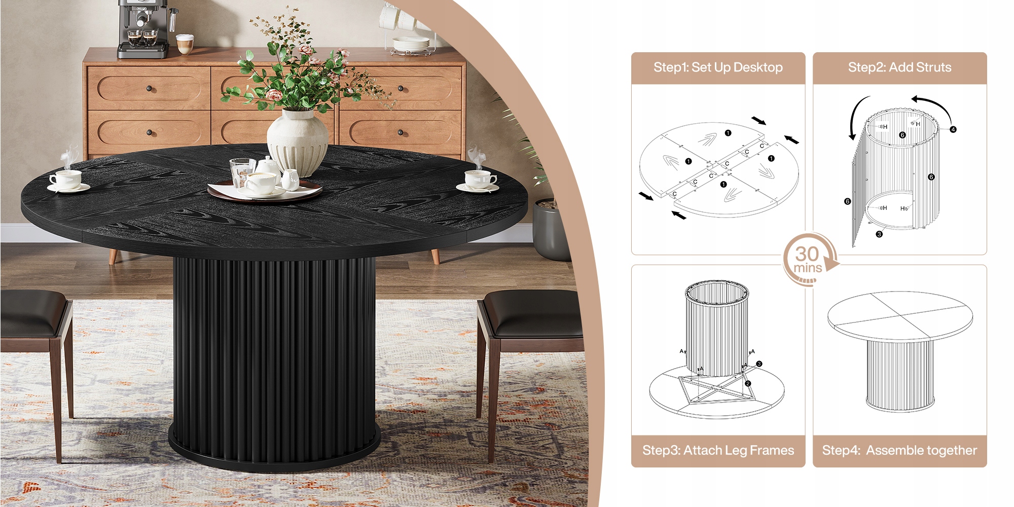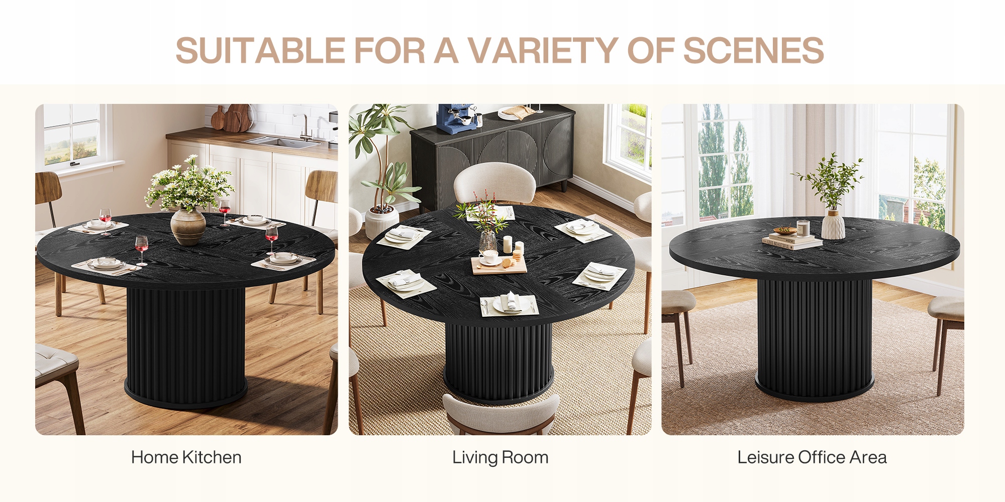 ⭐Підходить для 4-6 осіб: цей чорний круглий обідній стіл зручно розмістити 4-6 осіб. Він надає багато місця для кожної вечері, щоб насолоджуватися їжею, не відчуваючи тісноти, що робить його ідеальним для сімейних зустрічей або невеликих зустрічей з друзями.