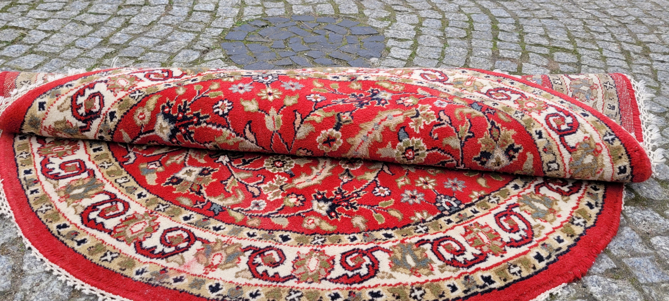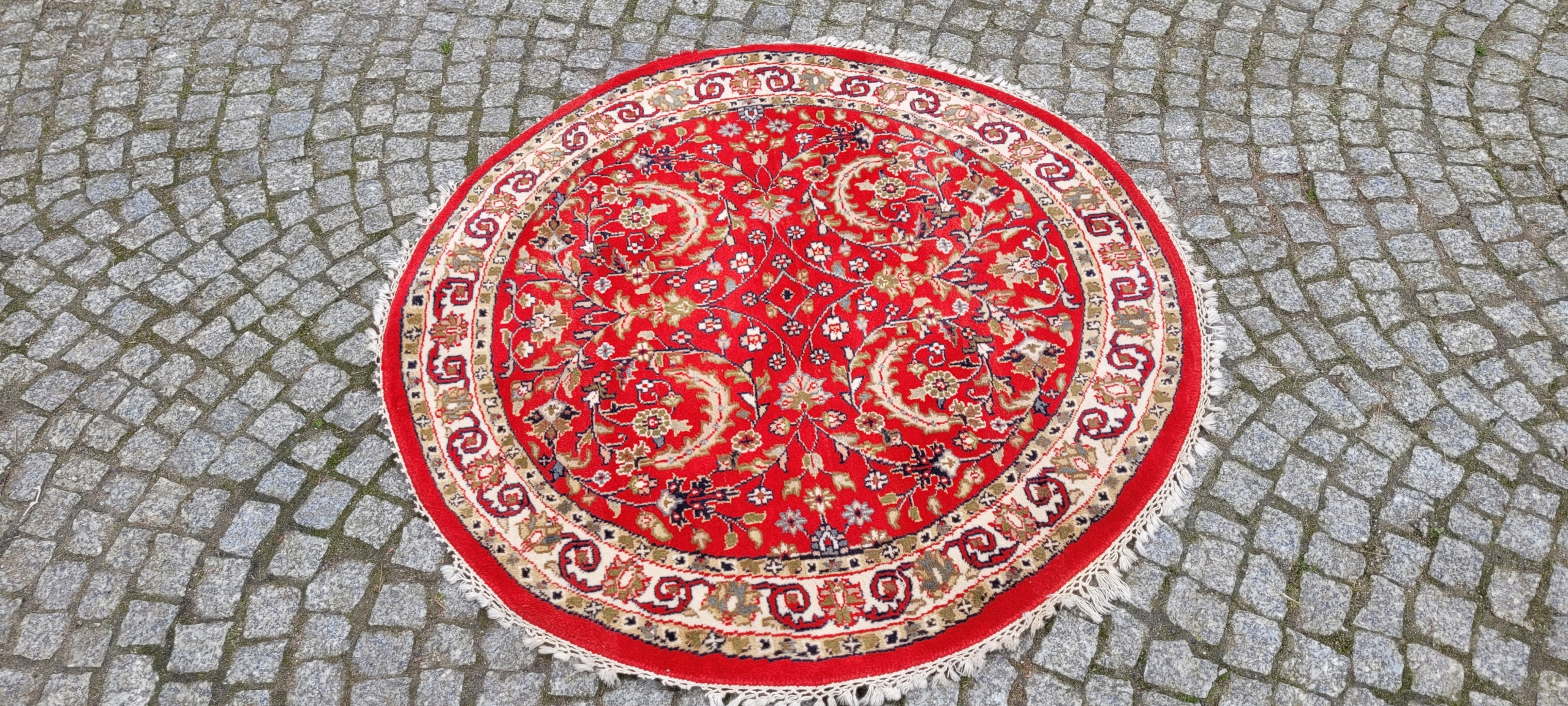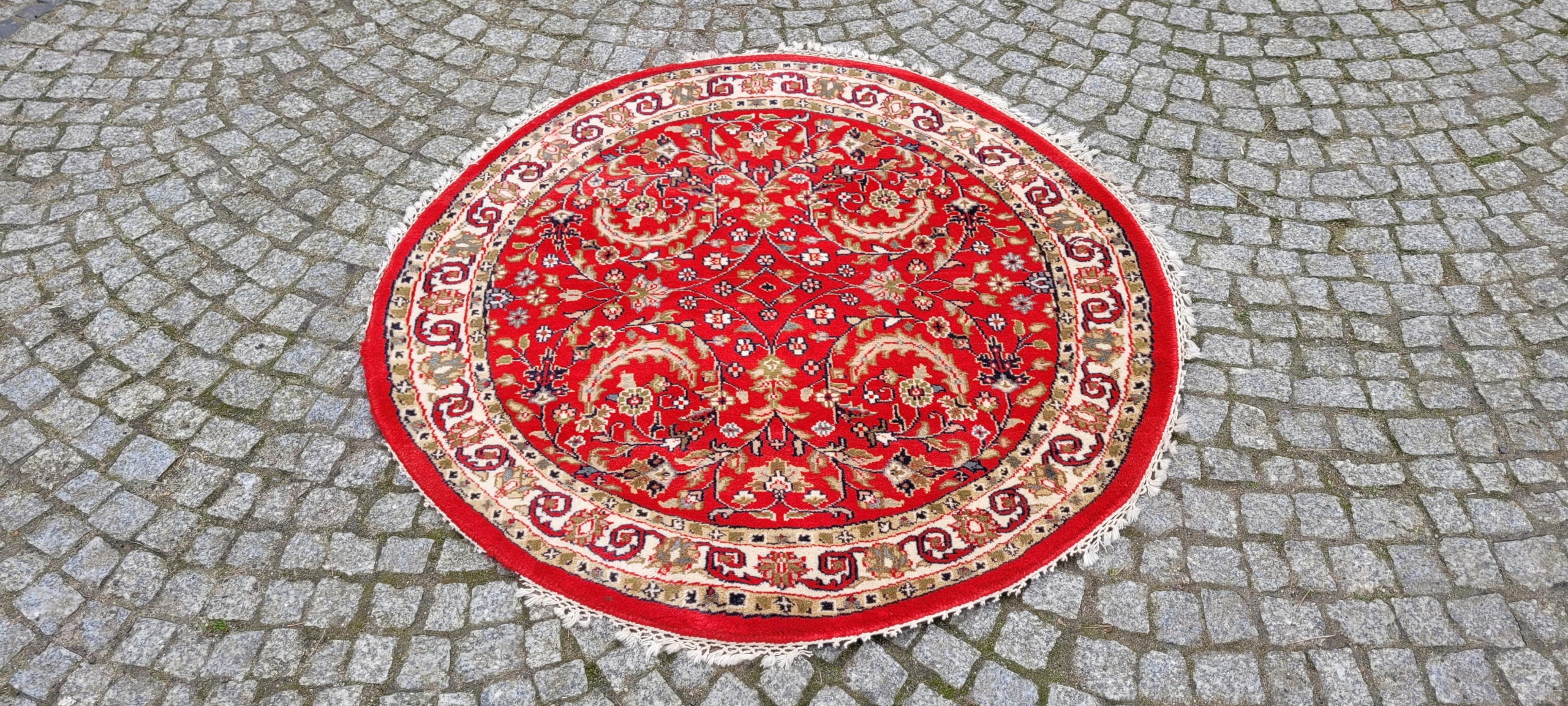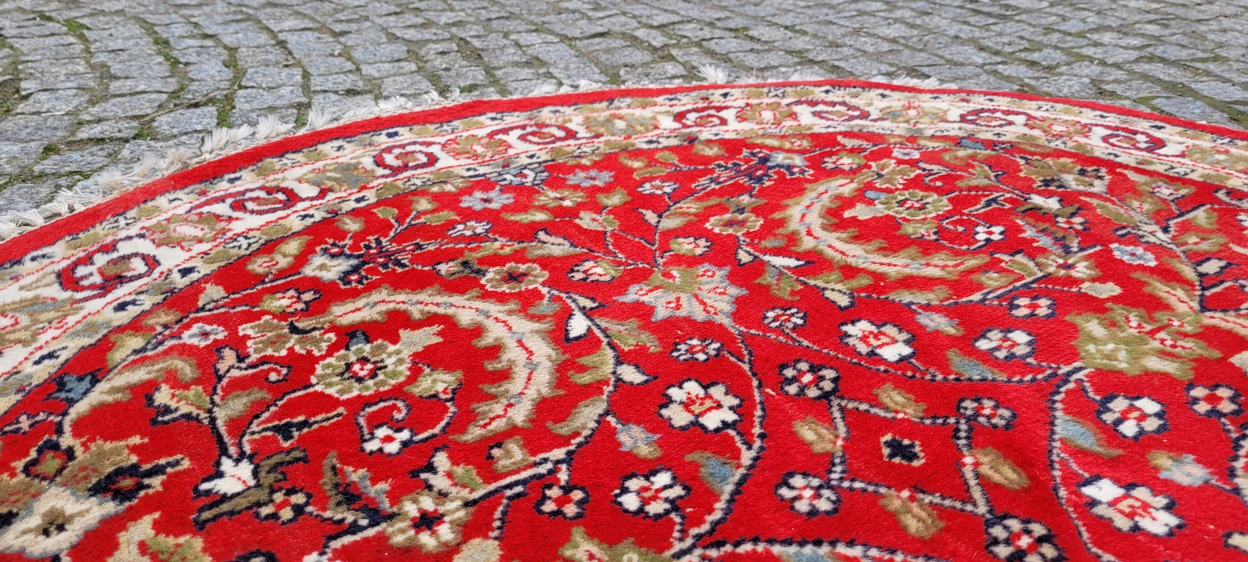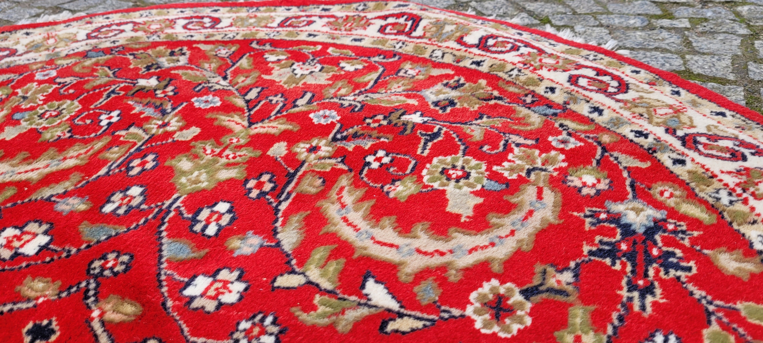 КРУГЛИЙ ПЕРСЬКИЙ ГЛЯНЦЕВИЙ КИЛИМ ІНДО ТЕБРІЗ ТКАНИЙ ДІАМ. 126 СМ