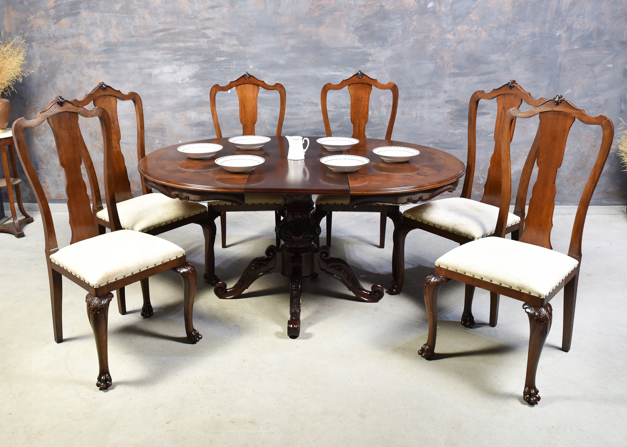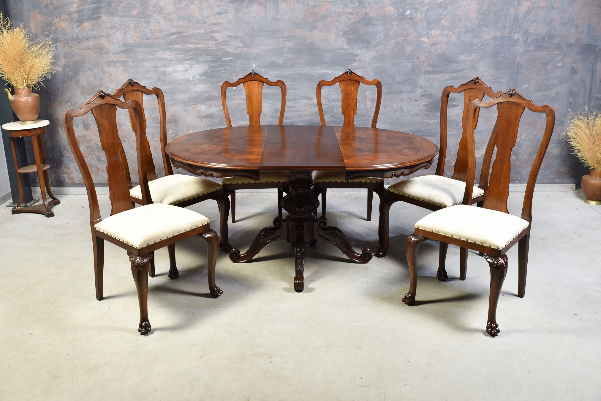 КРУГЛИЙ РОЗКЛАДНИЙ СТІЛ + 6 СТІЛЬЦІВ МАСИВНОГО ГОРІХУ ПІСЛЯ РЕМОНТУ