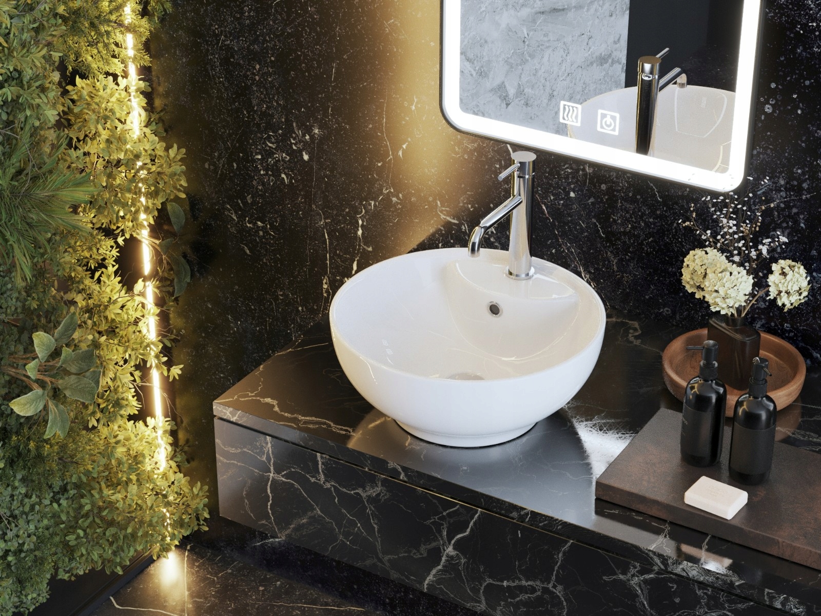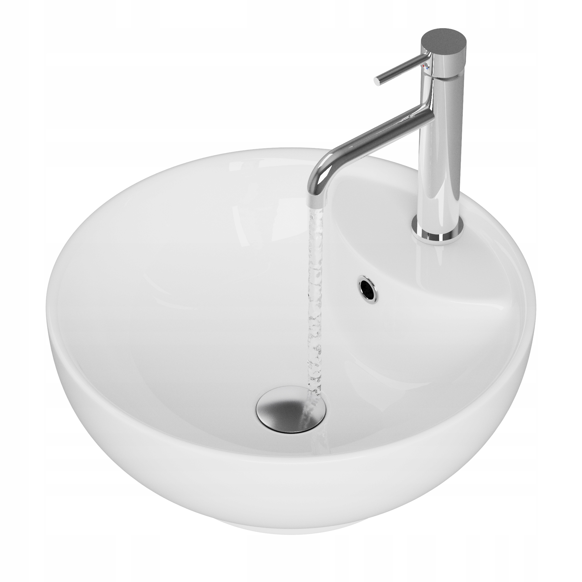 КРУГЛА РАКОВИНА НА СТІЛЬНІ, БІЛА КЕРАМІКА, З ПЕРЕЛИВОМ JAVA
