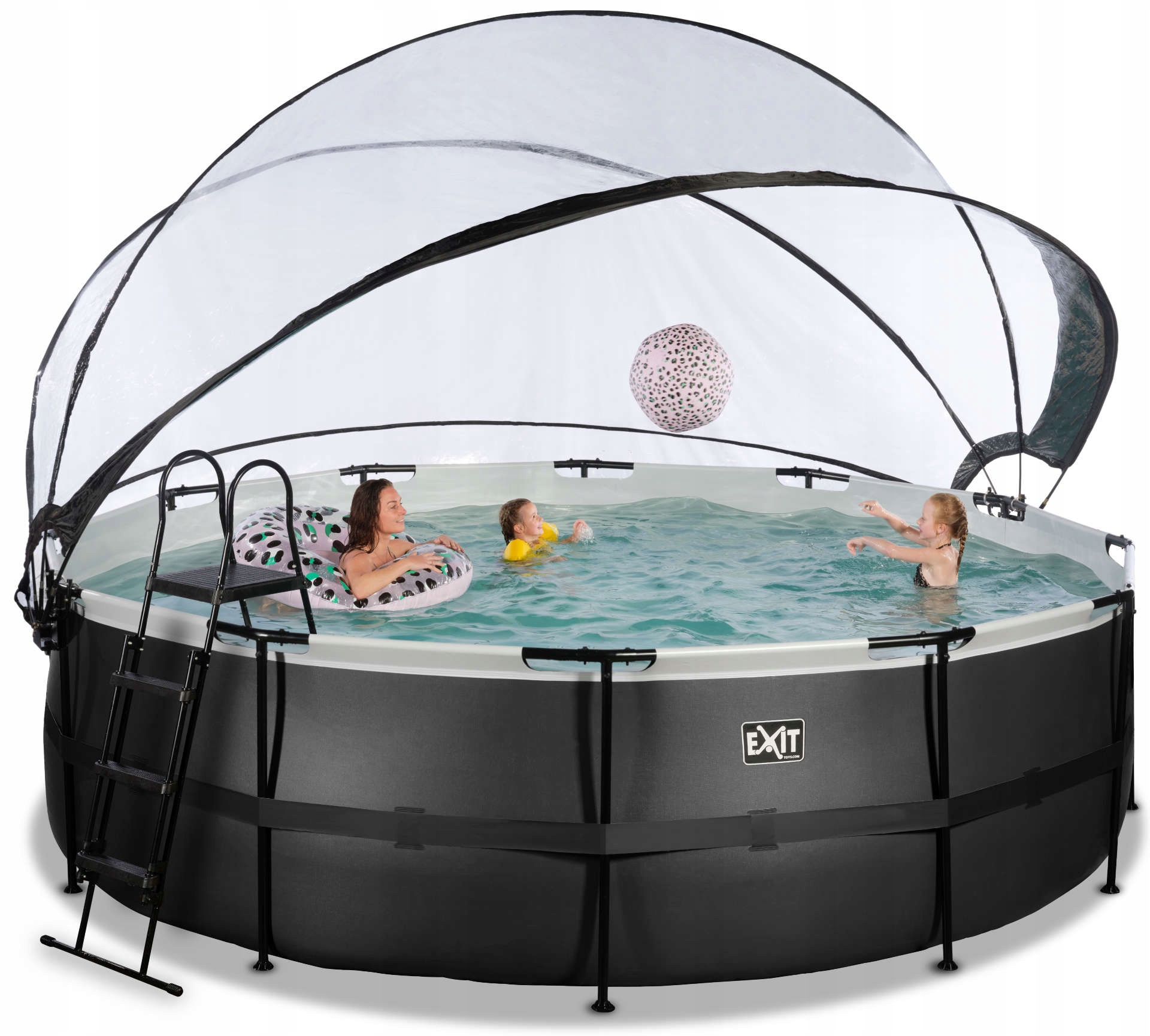 Басейн EXIT Black Leather ø488x122 см — це басейн із круглим каркасом. Цей великий басейн стандартно оснащений насосом з піщаним фільтром, кришкою та драбиною для басейну, яка дозволяє безпечно входити та виходити з басейну. Каркасний басейн забезпечує достатньо місця для гри з надувними аксесуарами для басейну або занурення під воду.