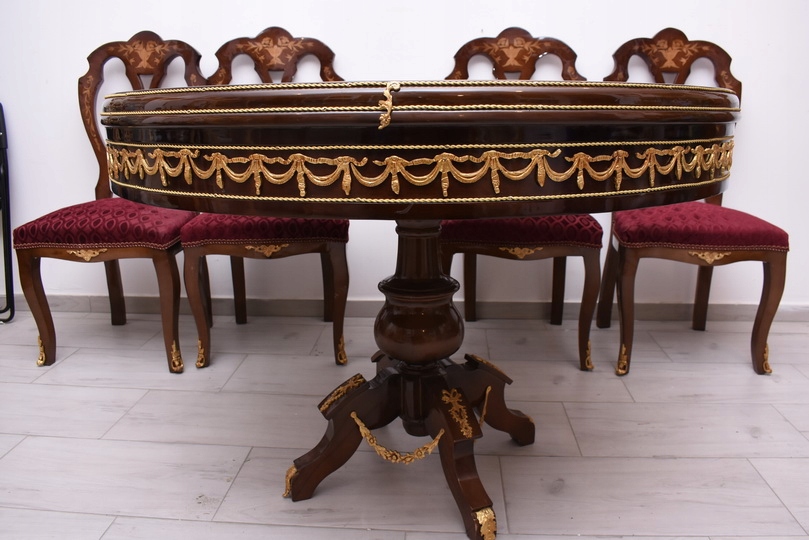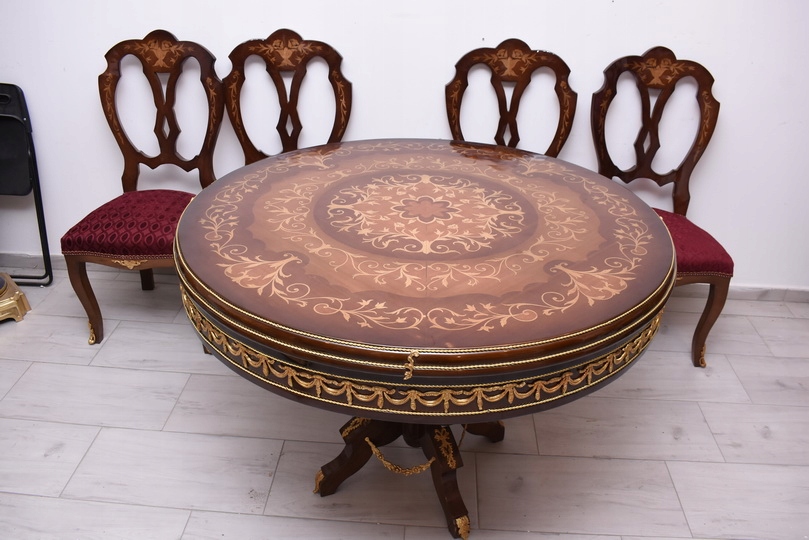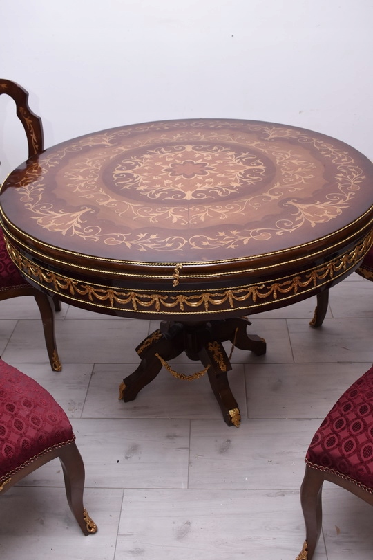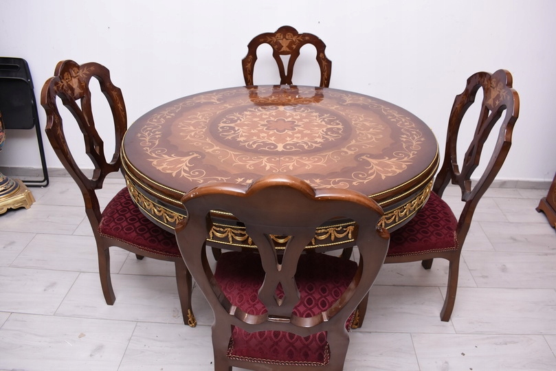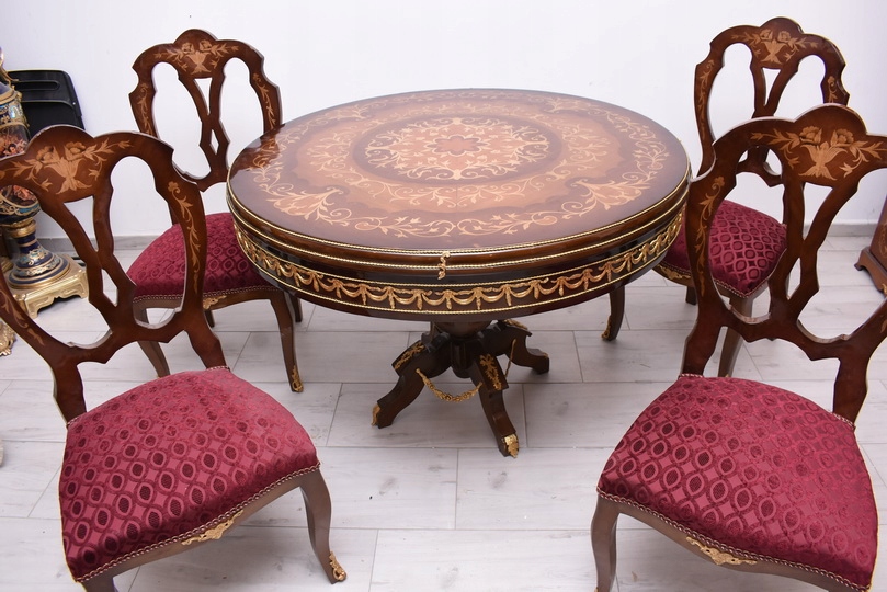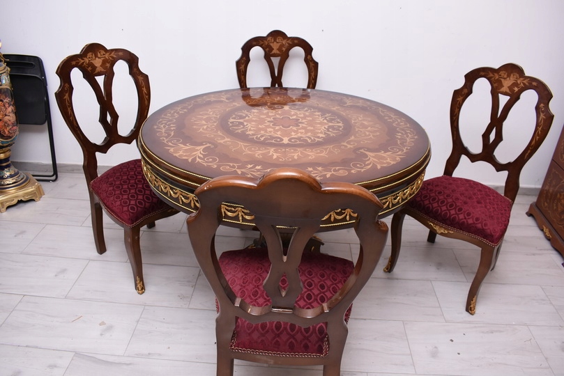 Круглий стіл + 4 стільці з інкрустацією в стилі Ludwikowski - Меблі для вітальні їдальні
