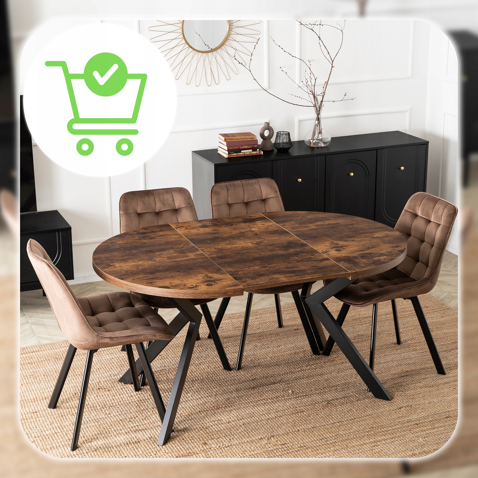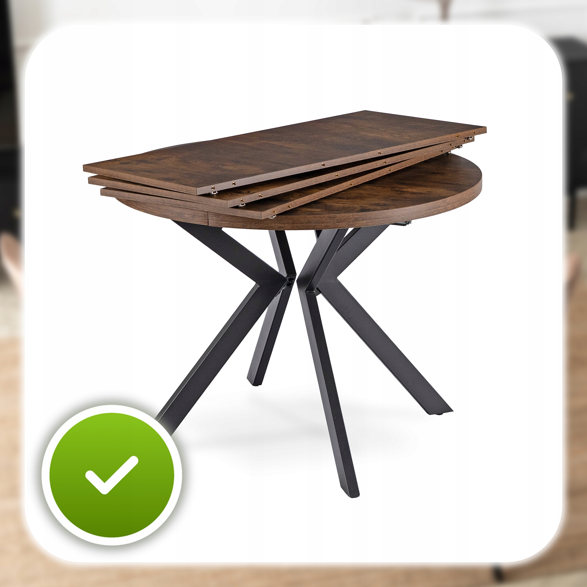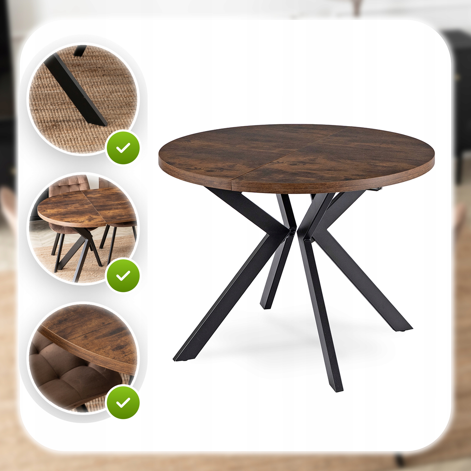 Круглий розкладний стіл Сучасна їдальня Лофт Лофт Сільський дуб Лукас ⭐⭐⭐⭐⭐