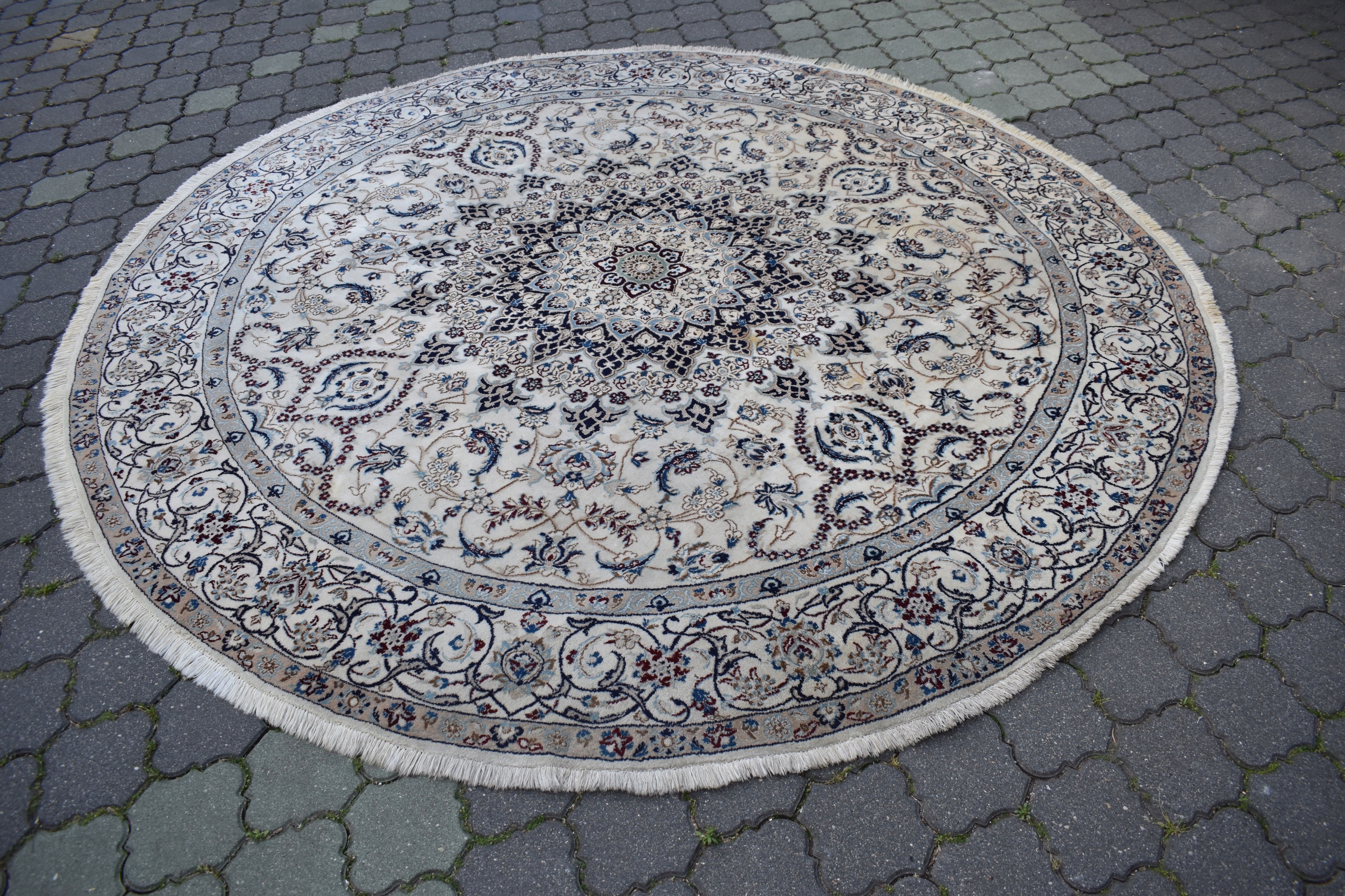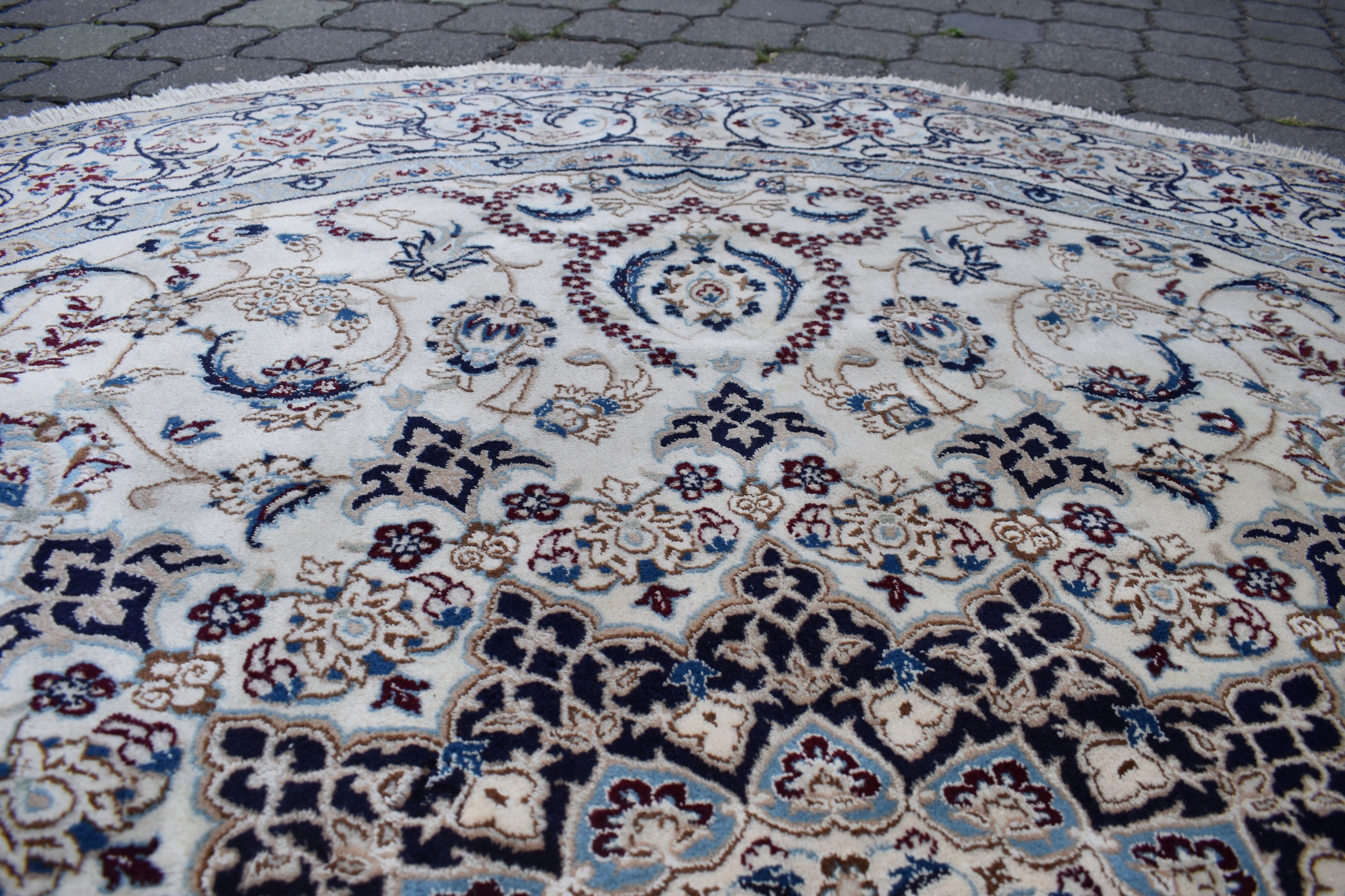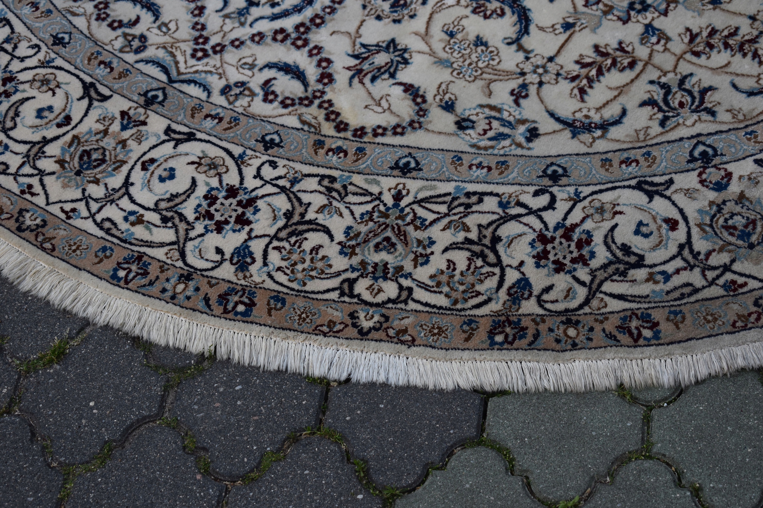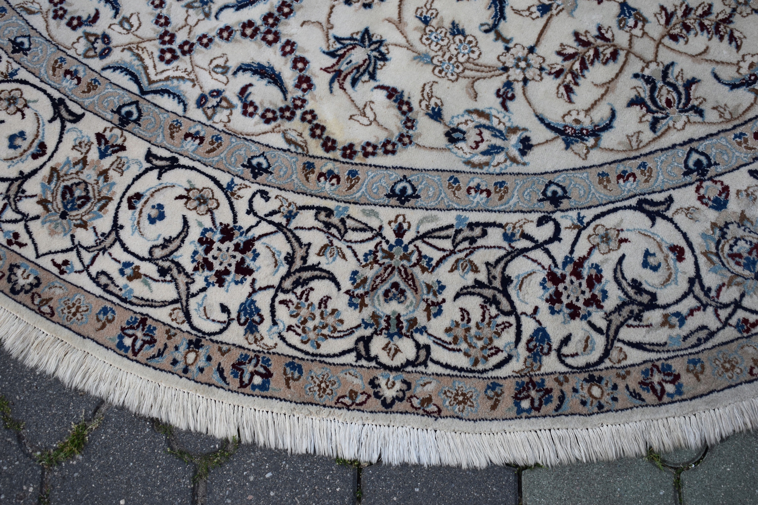На наступному аукціоні я пропоную вашій увазі круглий, виготовлений з вовни найвищої якості з додаванням шовкових ниток, хитромудрого перського килима ручної роботи NAIN - Made in Iran. Килим преміум класу, найвищої якості.