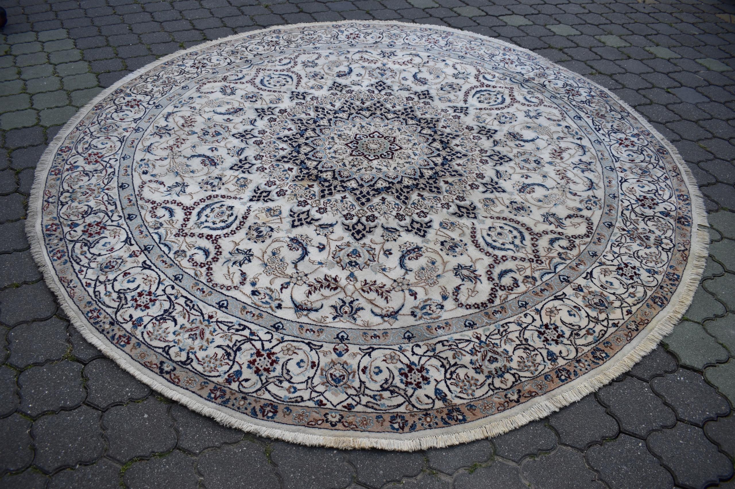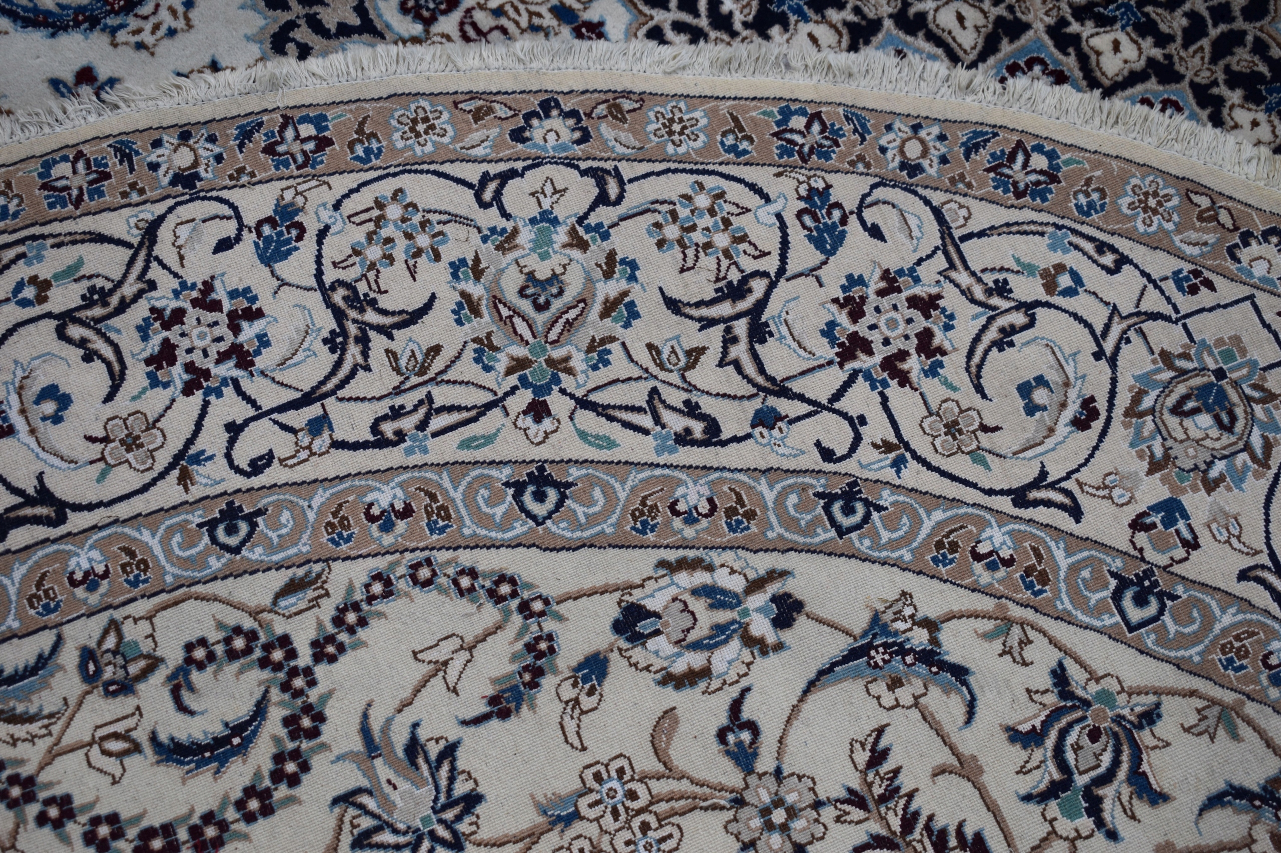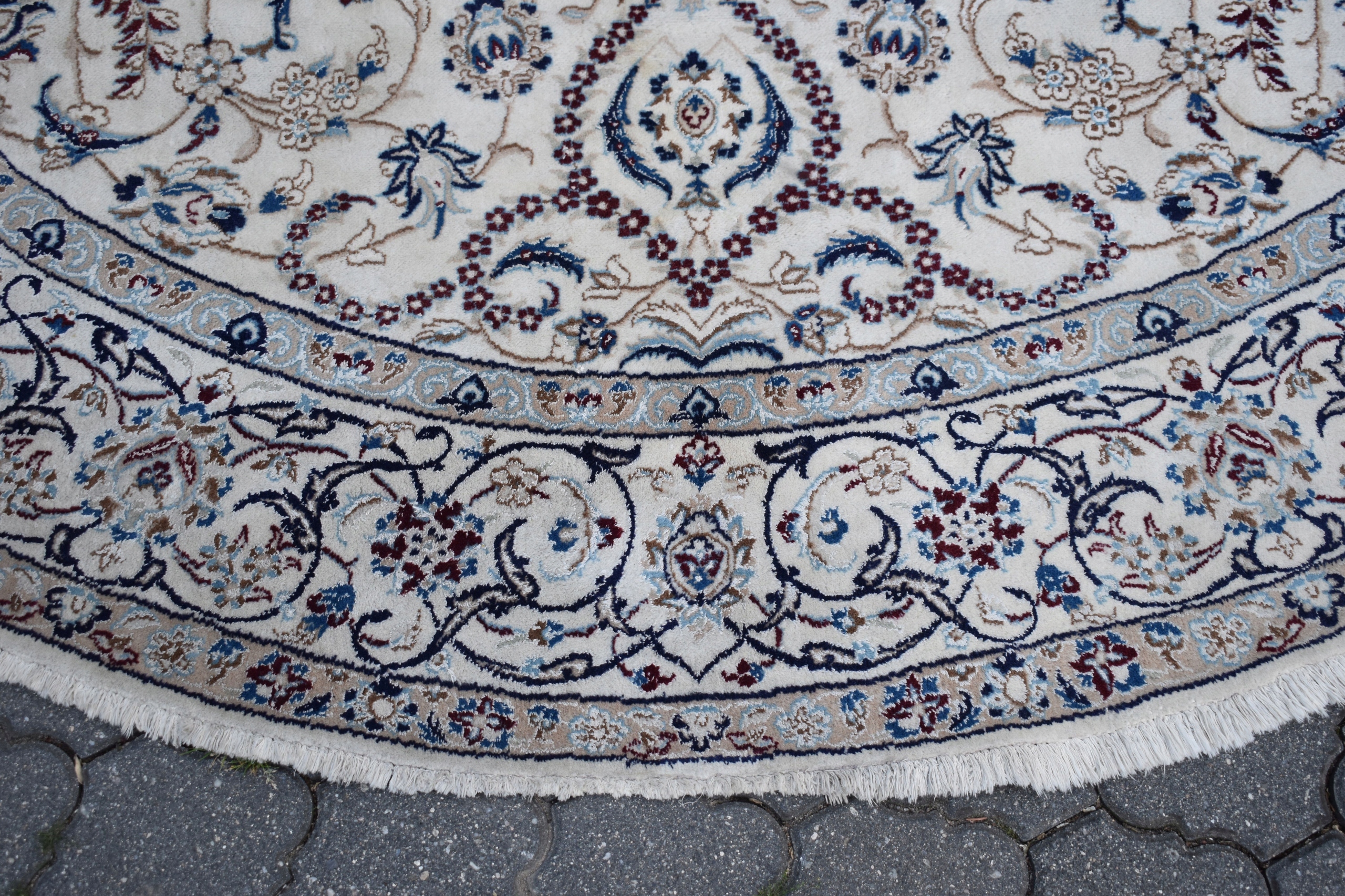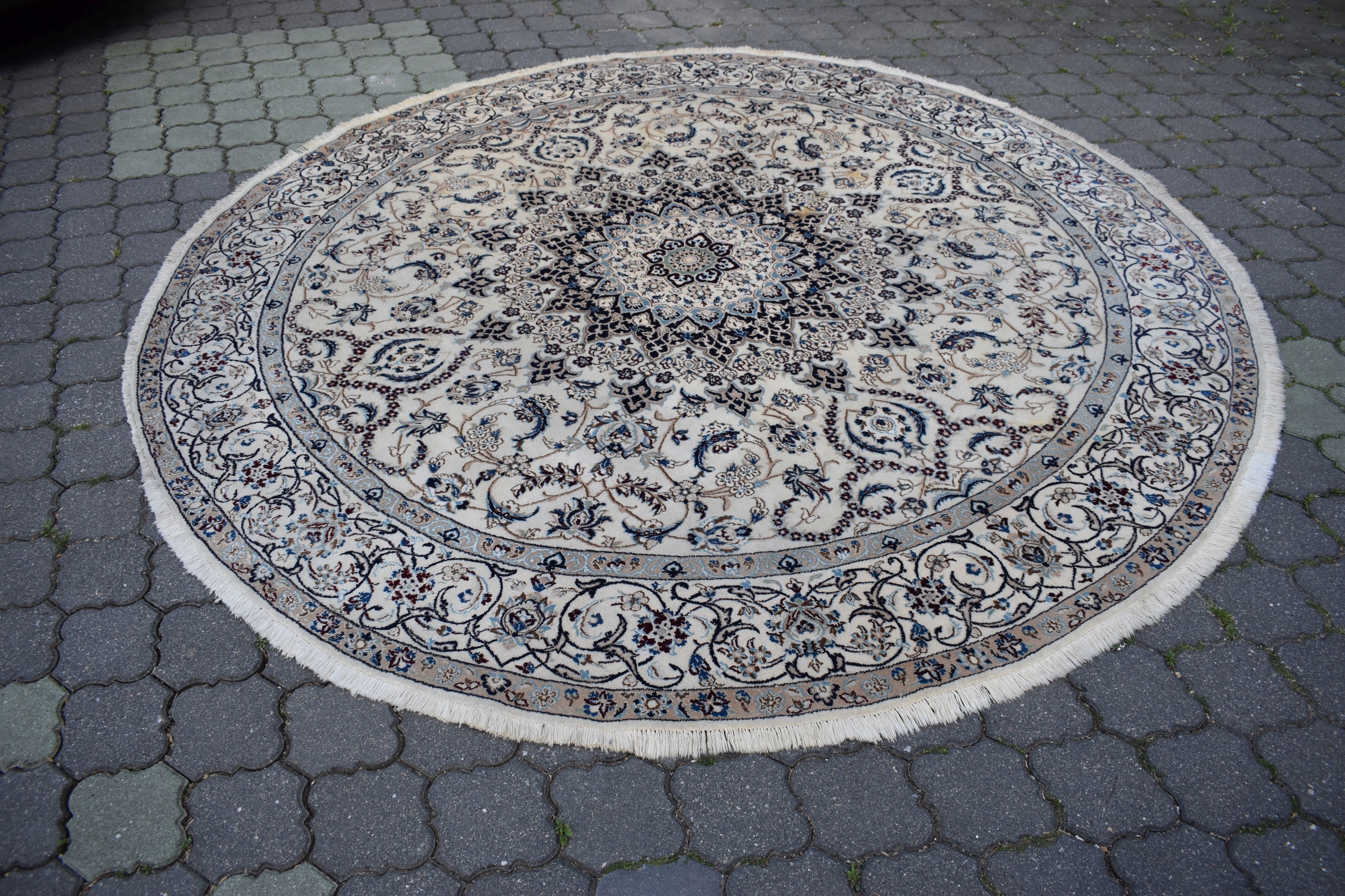 На наступному аукціоні я пропоную вашій увазі круглий, виготовлений з вовни найвищої якості з додаванням шовкових ниток, хитромудрого перського килима ручної роботи NAIN - Made in Iran. Килим преміум класу, найвищої якості.