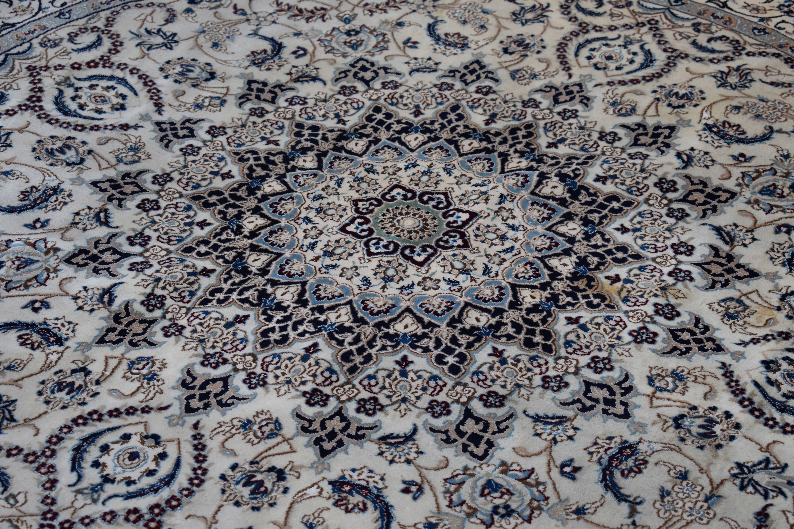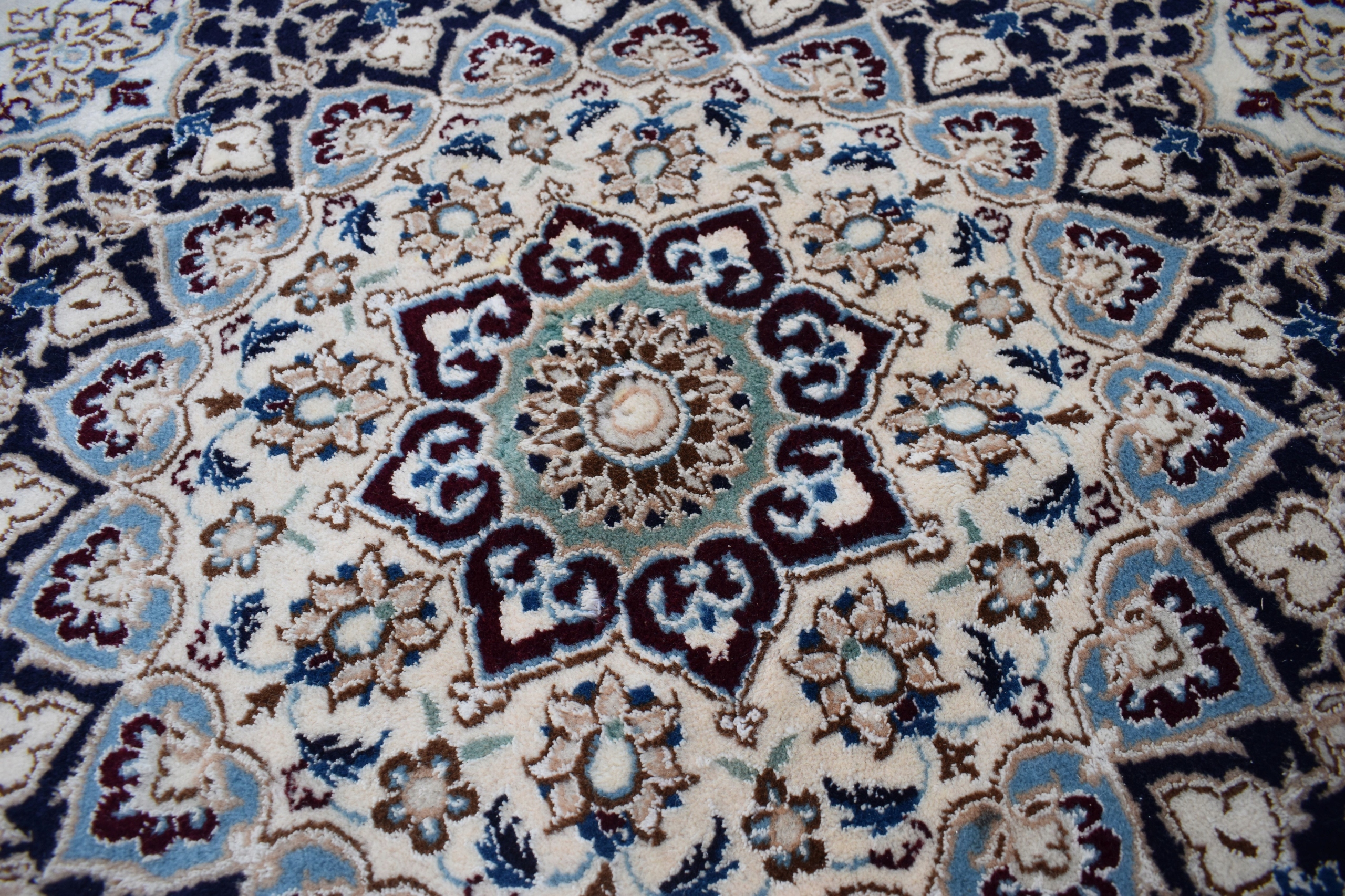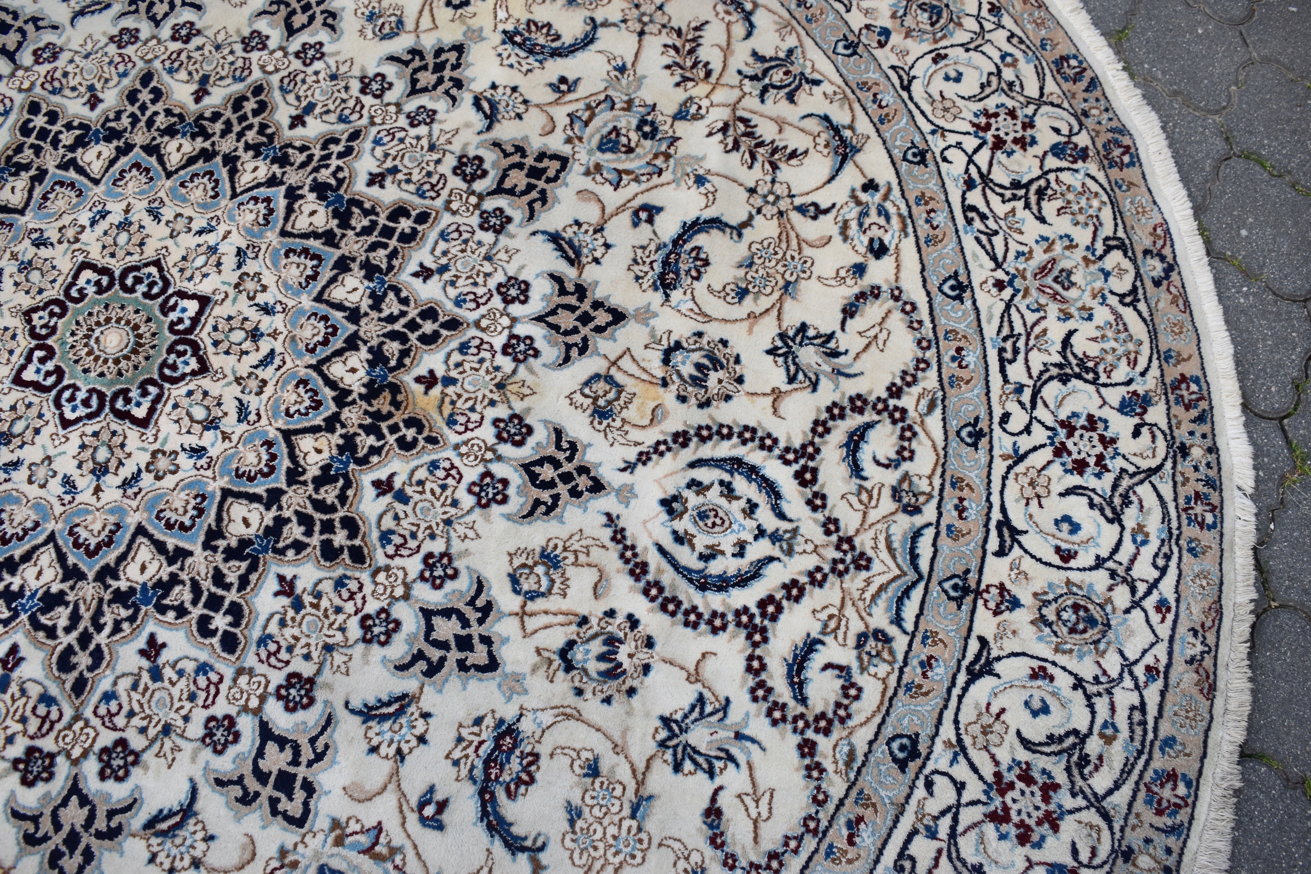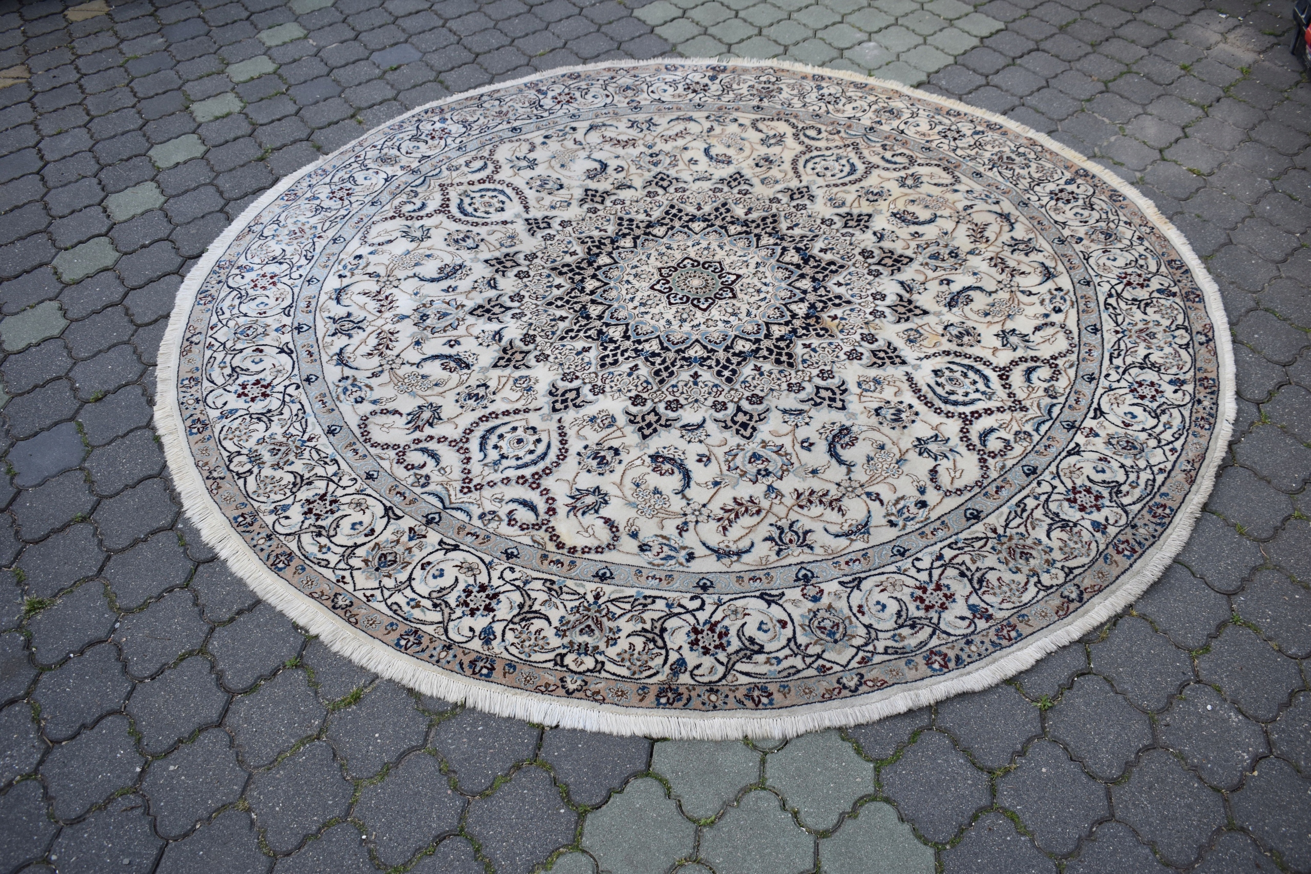 На наступному аукціоні я пропоную вашій увазі круглий, виготовлений з вовни найвищої якості з додаванням шовкових ниток, хитромудрого перського килима ручної роботи NAIN - Made in Iran. Килим преміум класу, найвищої якості.