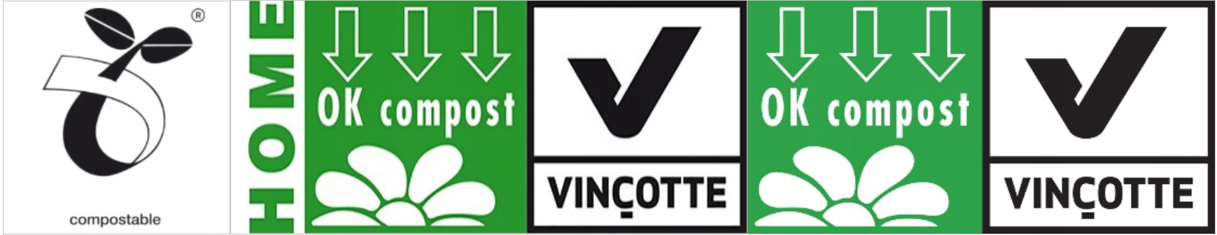 Всі продукти для крохматом виготовлені з 100% біополімерів, які мають промисловий сертифікат OK Compost та OK Compost. Ці сертифікати відповідають вимогам стандарту EN13432: 2002. Продукт повністю біологічно розкладається в умовах домашнього компосту.